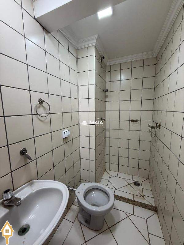 - Banheiro social com box, espelho e armário;
