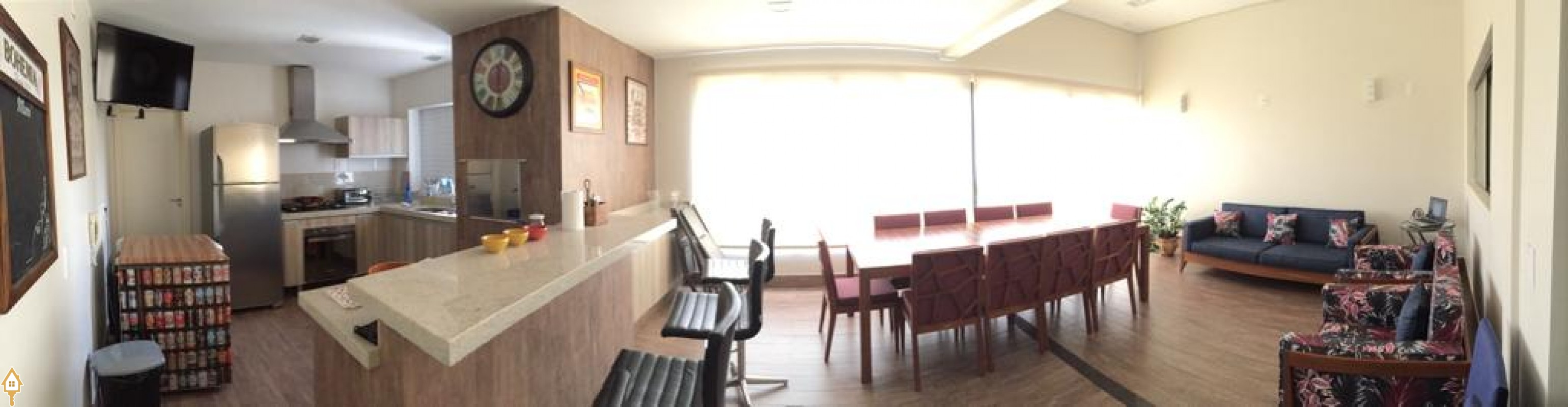 O condomínio de alto padrão possui área de lazer completa com piscina aquecida, academia, brinquedoteca e salão de festas.