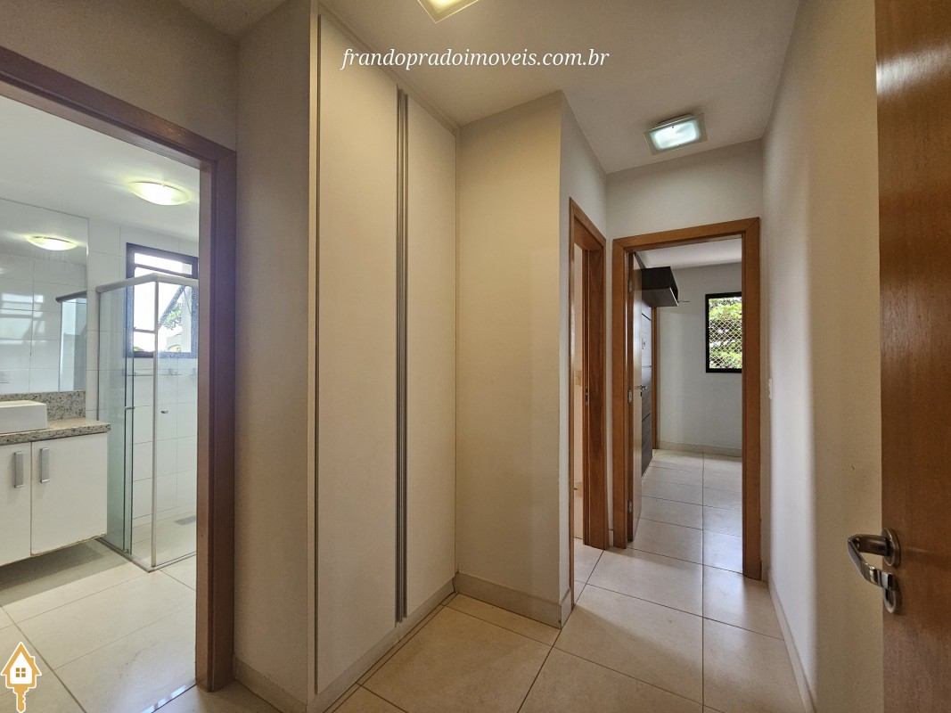 Na área íntima, são três quartos, sendo uma suíte com closet, todos com armários planejados. O imóvel conta ainda com duas vagas de garagem.