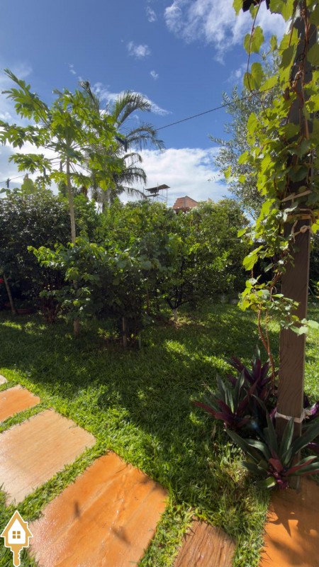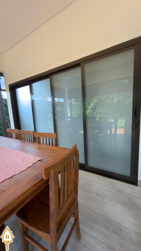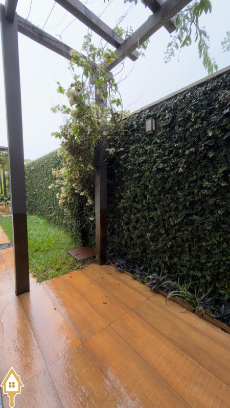 Possui varanda externa fechada com toldos zipline, amplo quintal com árvores frutíferas e telhado Shingle aparente, resistente a ventos e granizo, além de telhado embutido com telhas sanduíche, garantindo conforto térmico.