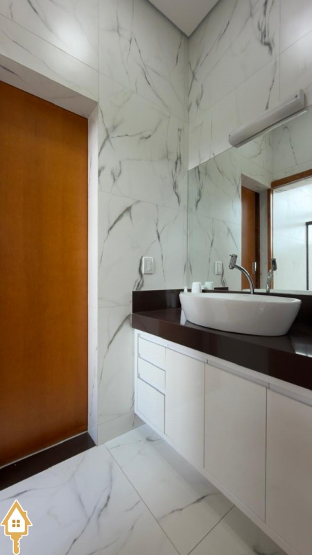 No piso superior: 2 suítes com banheiro americano e escritório.