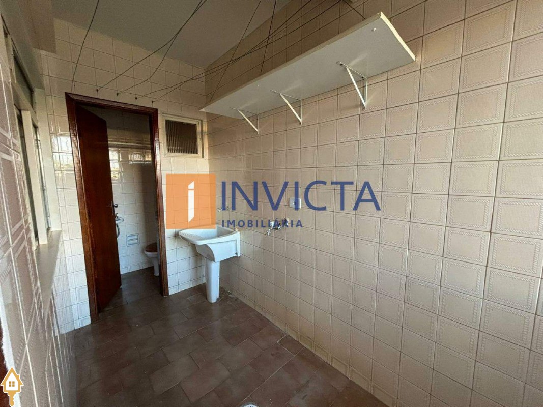 Apartamento área central, composto por 3 quartos com armários, sendo uma suíte; duas salas; cozinha; banheiro social; lavanderia; banheiro externo; e uma vaga de garagem.