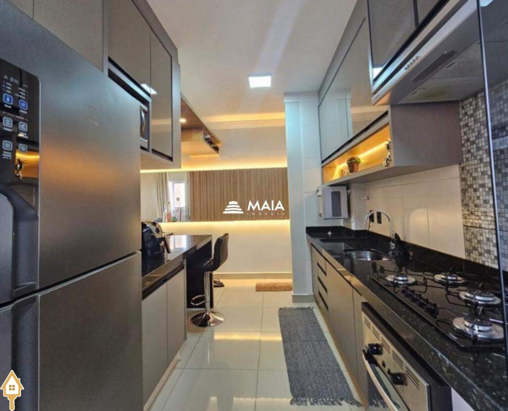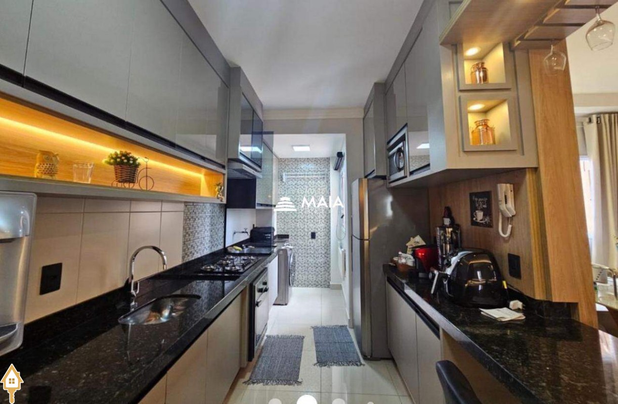 - Cozinha planejada com armários sob medida, fogao e cooktop;