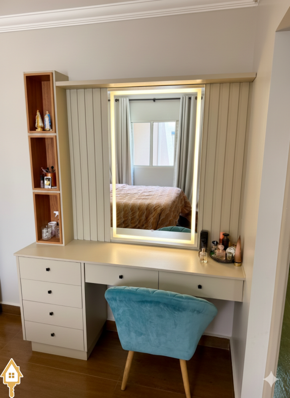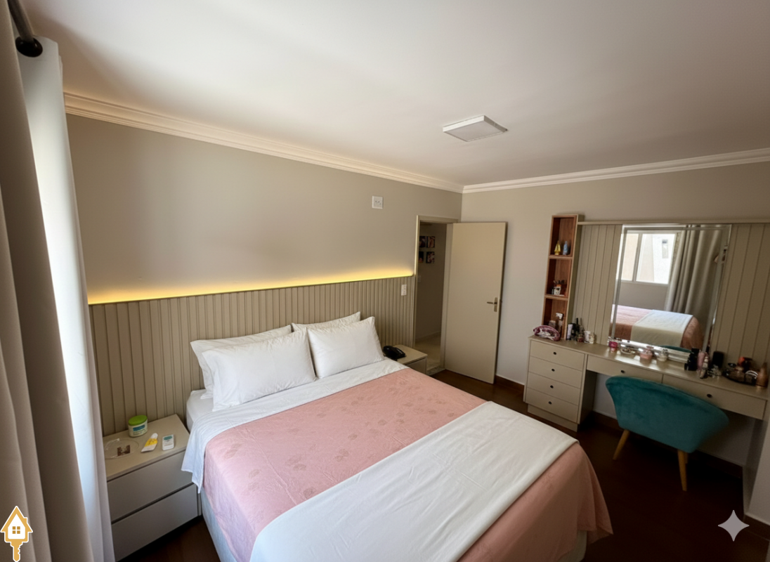 Possui 3 quartos sendo uma suíte com closet, demais quartos servidos com wc social, e móveis planejados, contando todos, com ar condicionado .