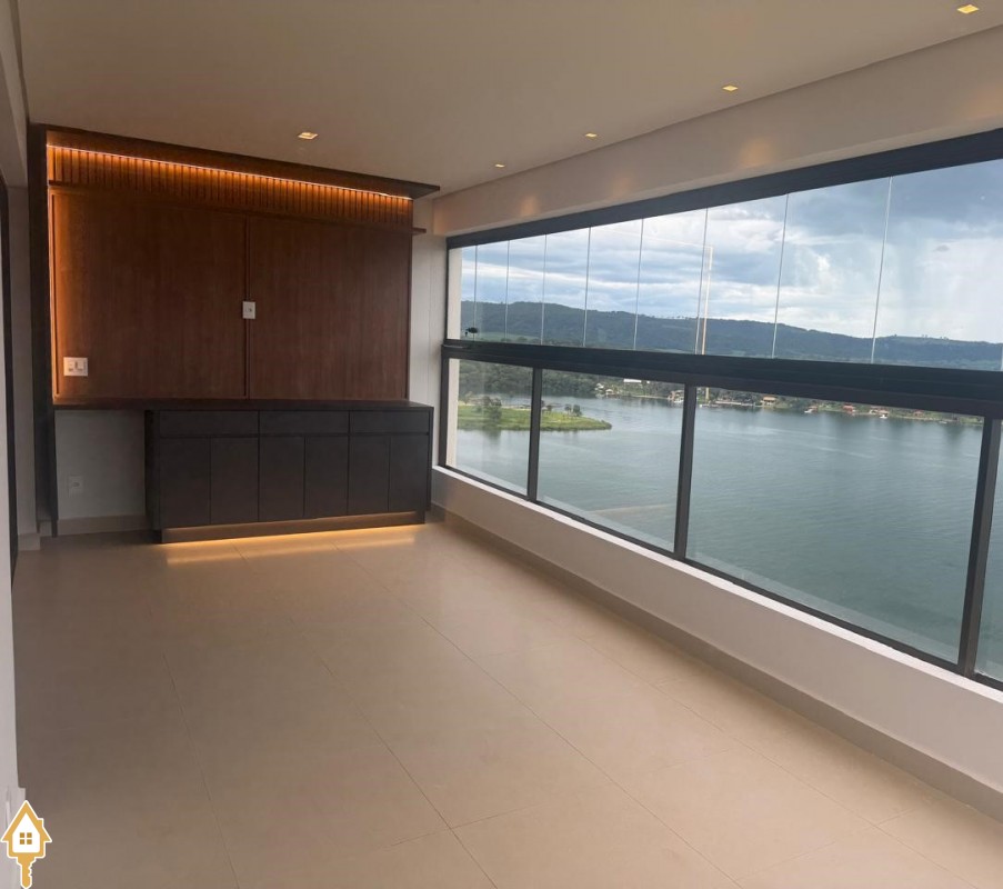 02 suítes com armários e ar condicionado, sala, cozinha planejada com fogão e forno, lavabo, varanda gourmet com painel em led. Vista privilegiada da represa Jaguara, 02 vagas de garagem, portaria, piscina com bar molhado, quadra de tênis, academia, espaço pet, restaurante gourmet e pier exclusivo. CA1079