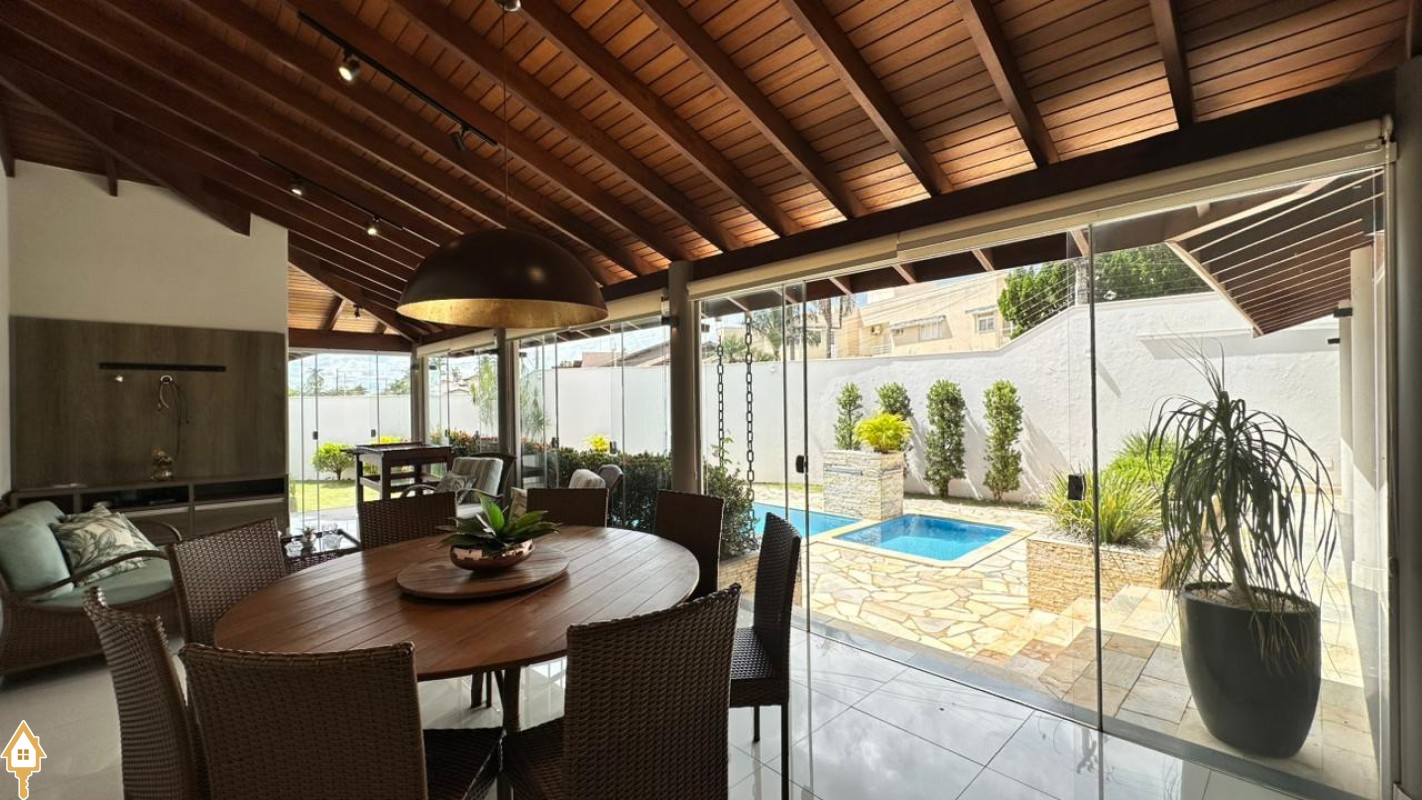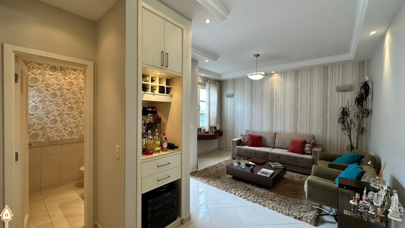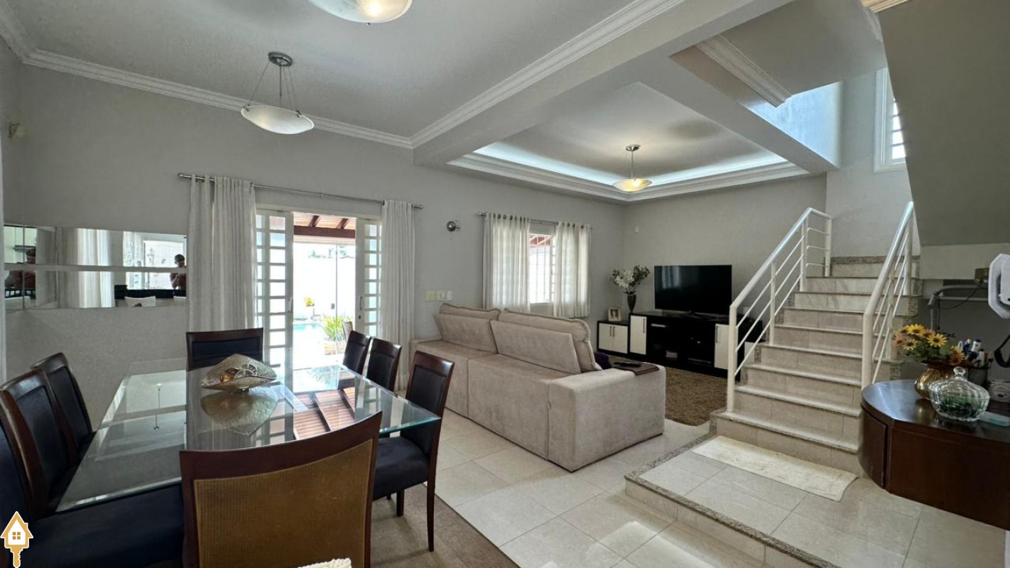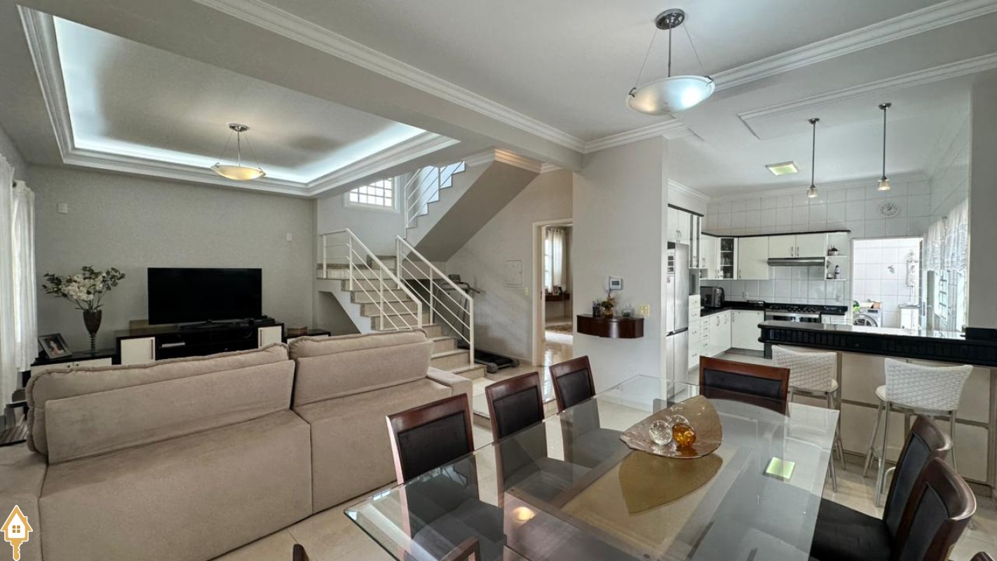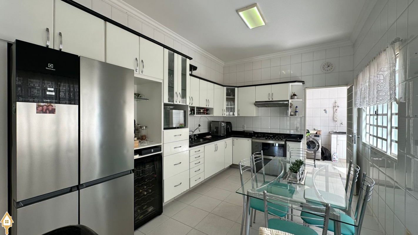 A residência conta com 4 dormitórios, sendo 2 suítes, todos com armários planejados que proporcionam organização e praticidade no dia a dia. A área social é composta por sala de TV, sala de estar e sala de jantar, ambientes perfeitos para receber amigos e aproveitar momentos em família. A cozinha completa e funcional atende perfeitamente quem aprecia praticidade e conforto no preparo das refeições.