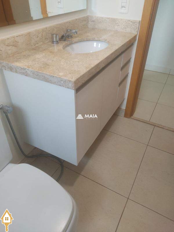 - banheiro social com armário, box em blindex e espelho ;