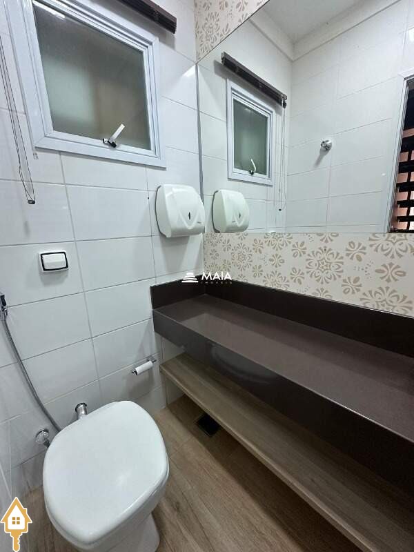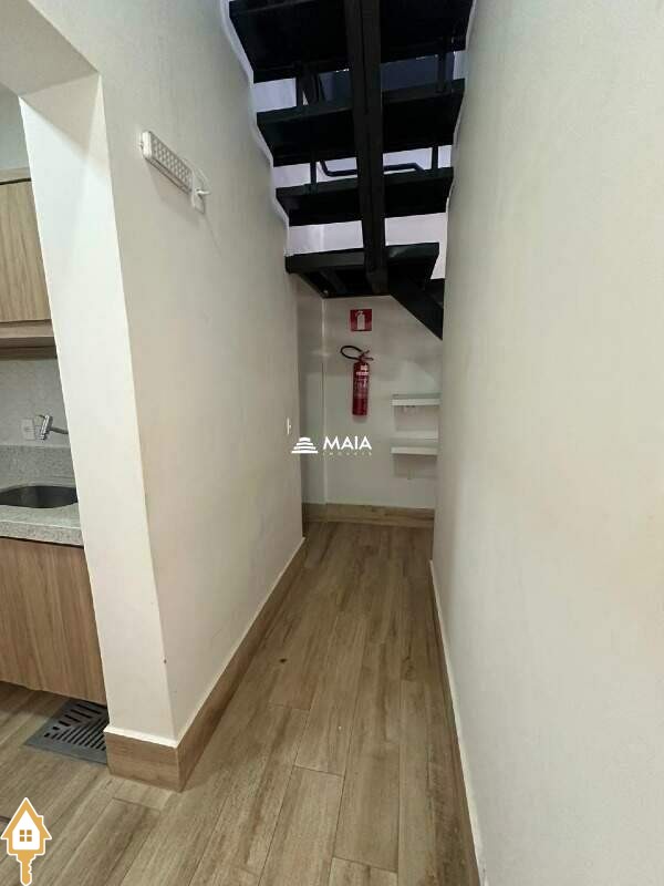 - Salão de aproximadamente 44 metros quadros na parte inferior contendo copa, banheiro e escada que dá acesso ao mezanino;