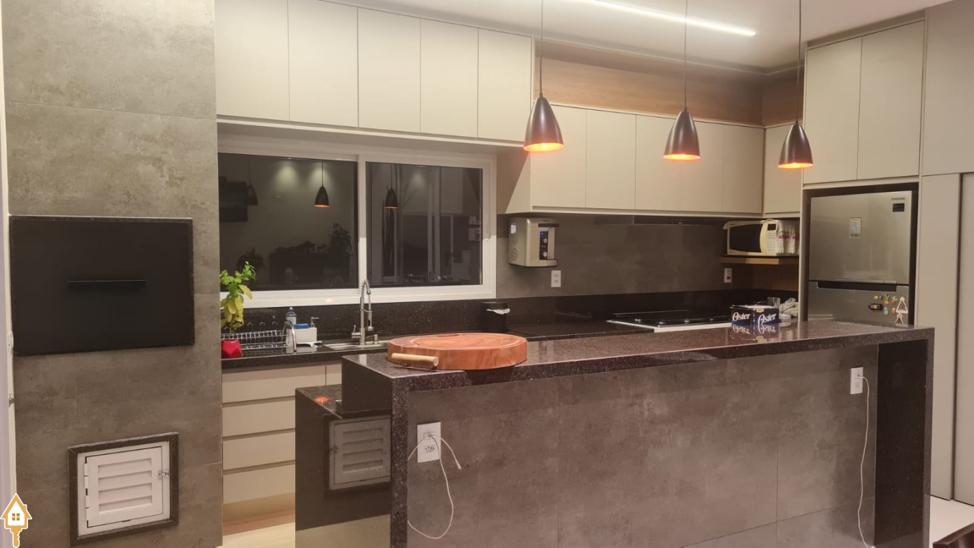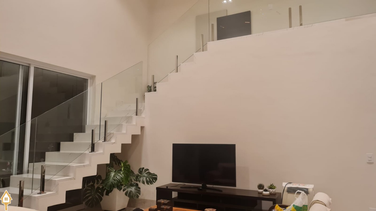 A sala ampla com pé-direito duplo proporciona um ambiente moderno, sofisticado e com ótima iluminação natural. A casa conta ainda com lavabo, área de serviço e uma agradável área gourmet, perfeita para momentos de lazer e confraternização.