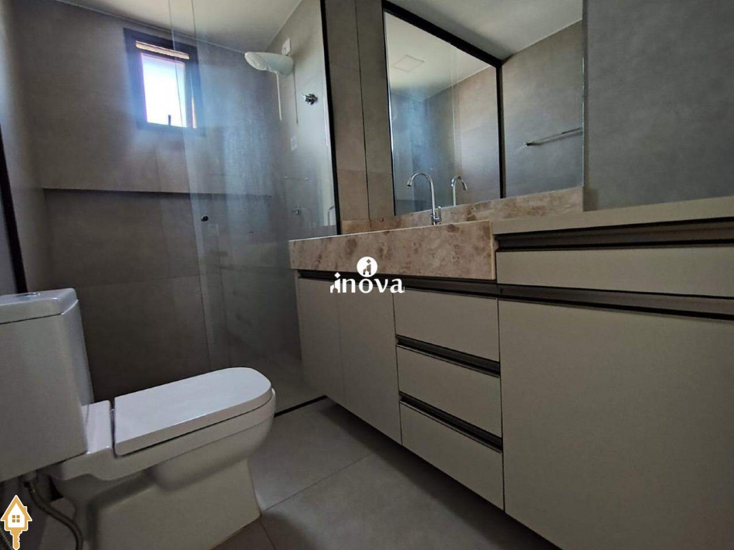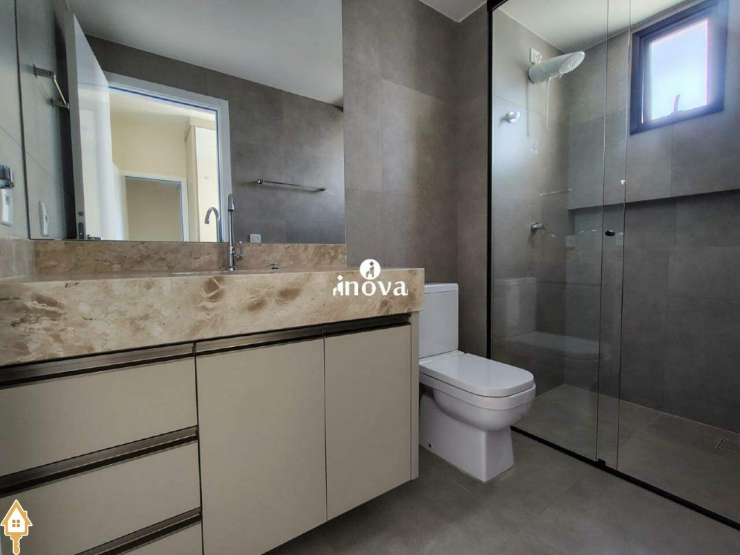 - Banheiros com box, armários e bancadas em mármore;