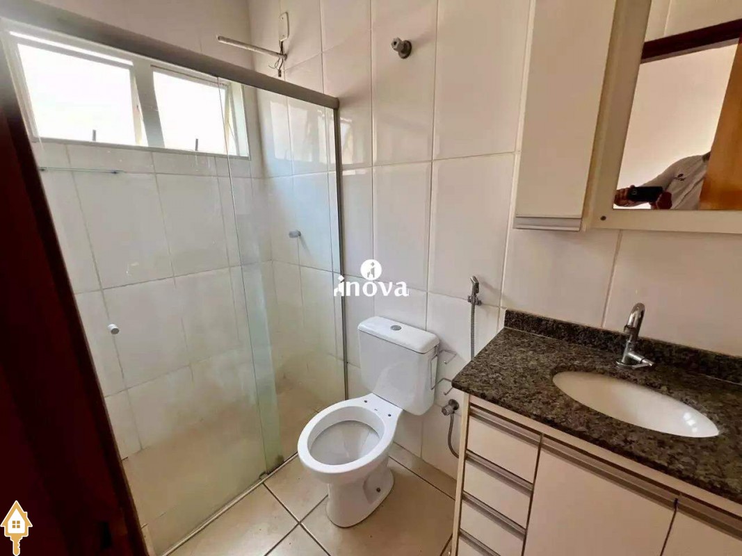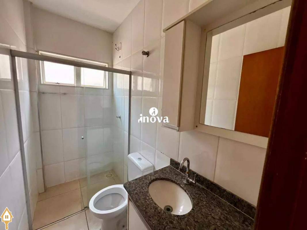 - Banheiro social com box, espelho e armários;