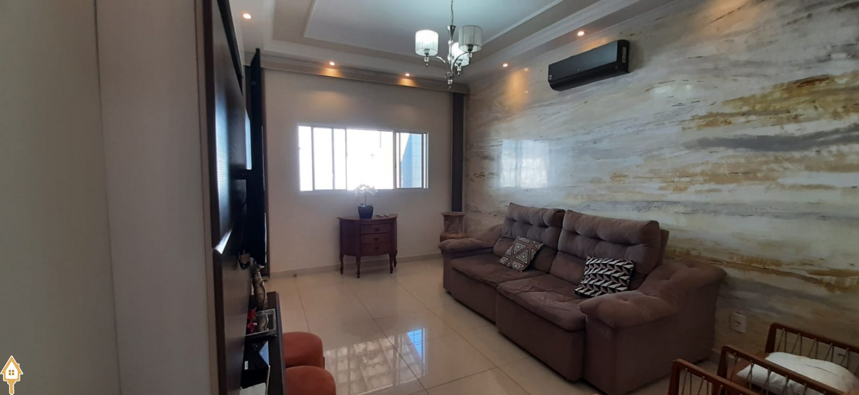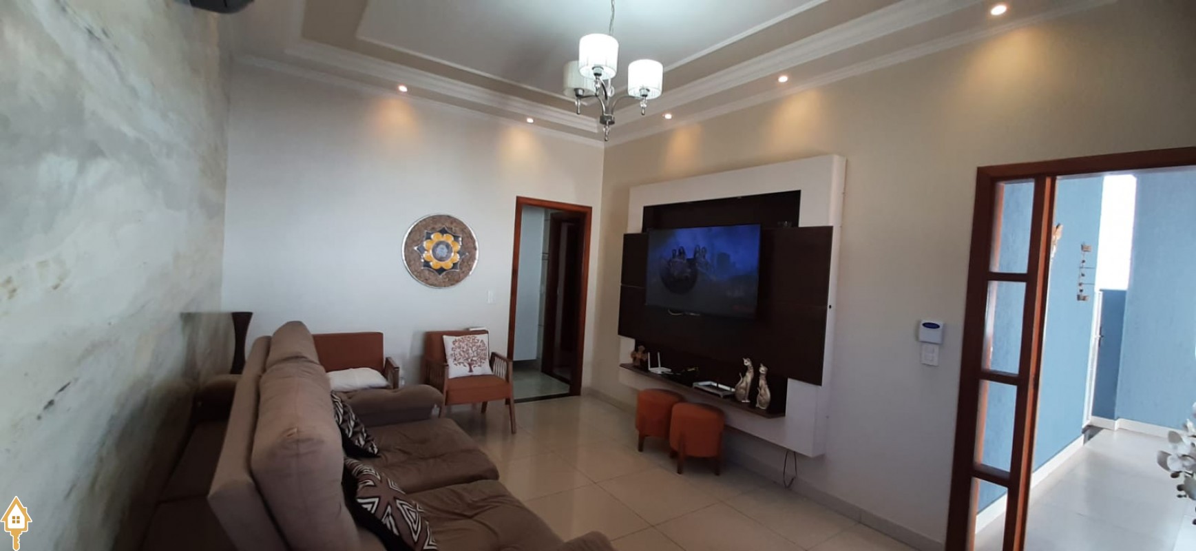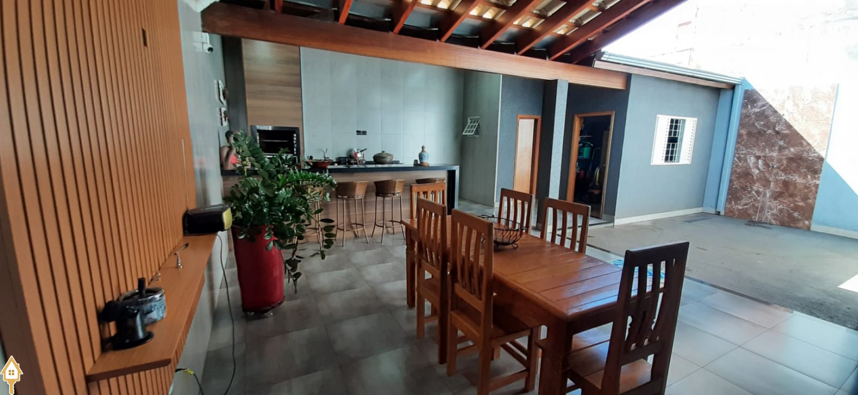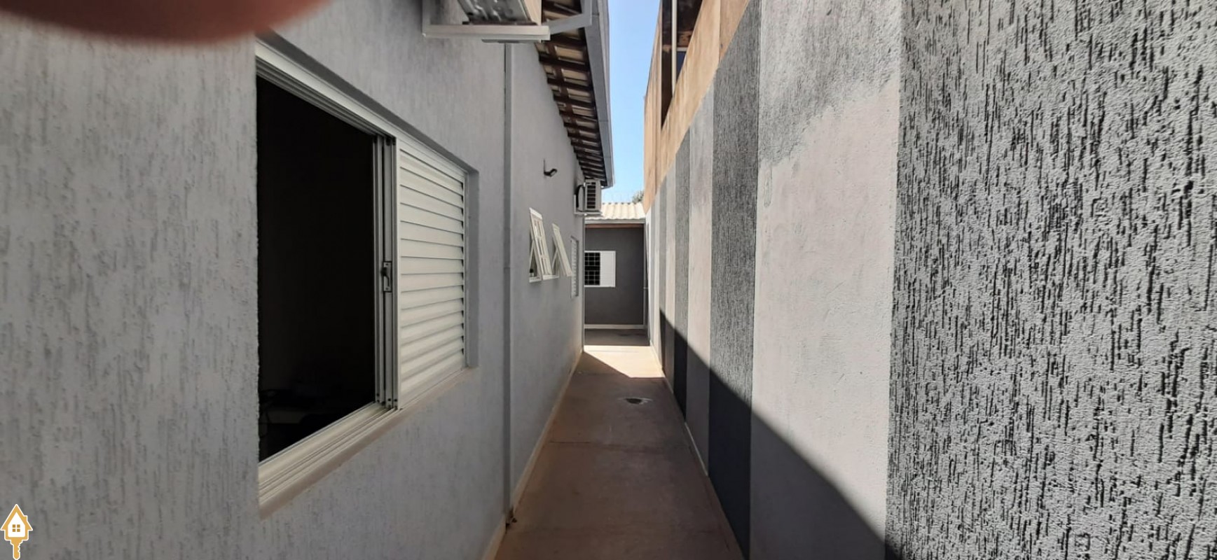 Casa composta de sala ampla, com painel e ar condicionado de 12.000 btus, 2 quartos confortáveis, sendo 1 suíte com armários planejados e 2 ares condicionados de 9.000 btus, cozinha planejada com copa anexada, banheiro social, varanda gourmet ampla e arejada com churrasqueira, bancada em granito e painel, quarto externo, lavabo, quintal cimentado com ducha, garagem para 4 carros, sendo 3 cobertos, área de serviço externa, coberta, energia fotovoltaica com 10 placas solares.