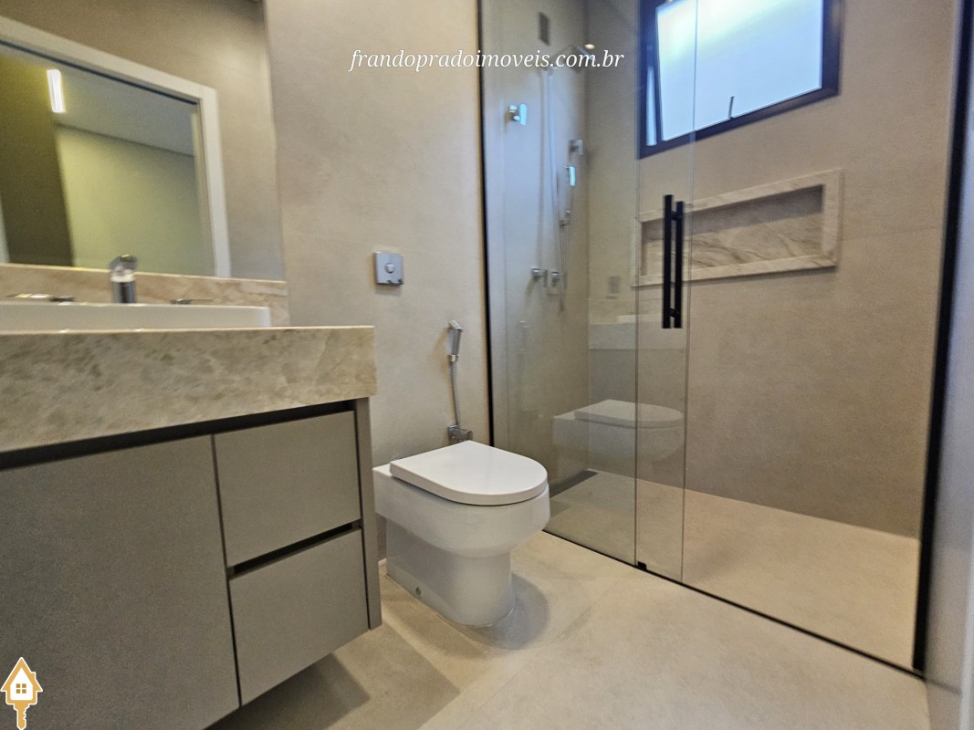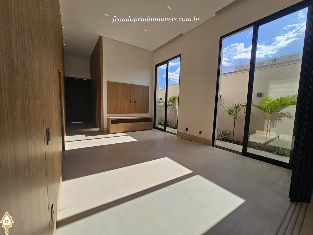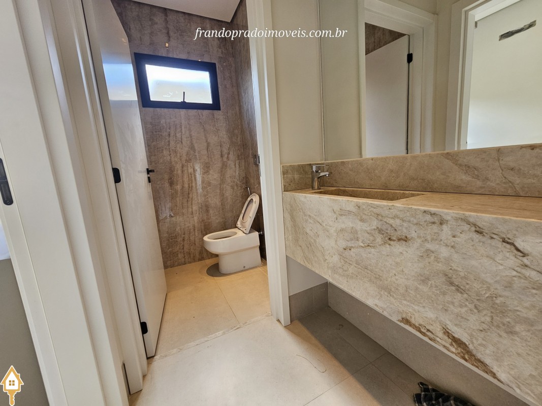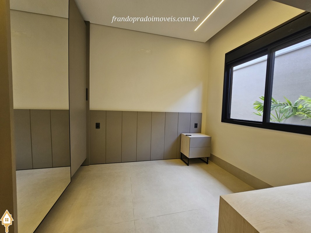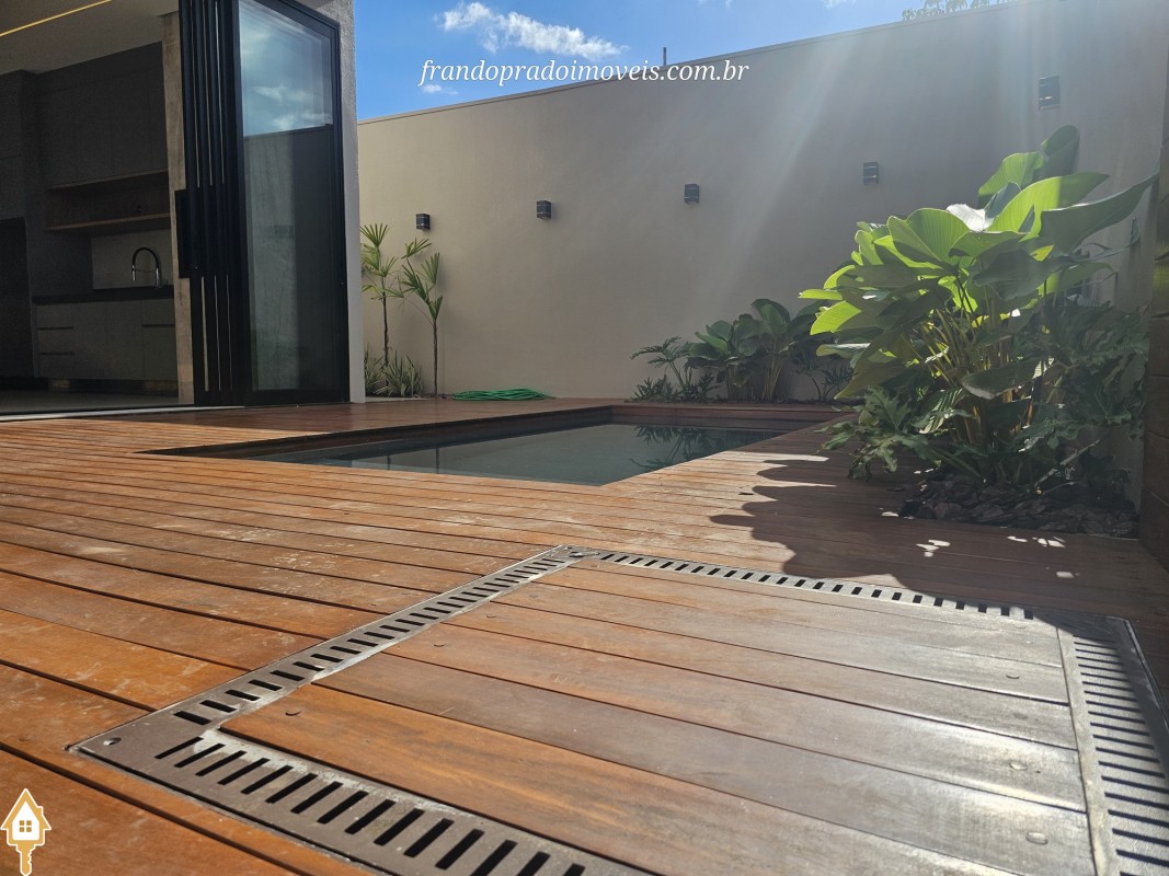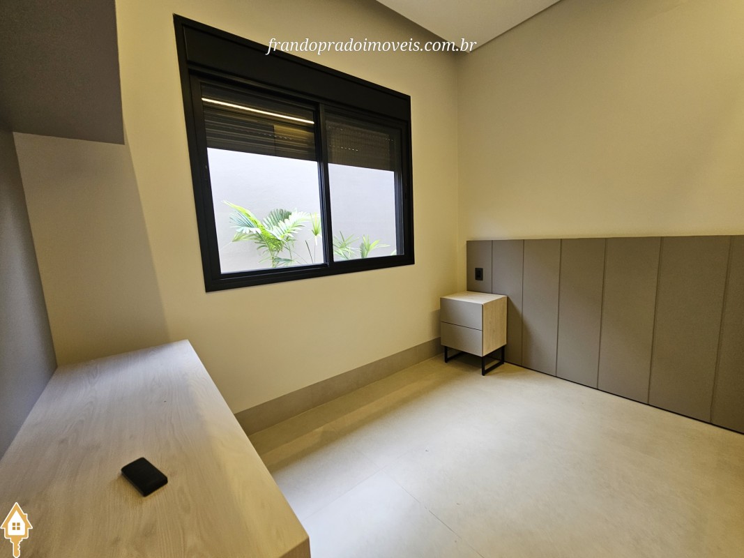 A área social integra sala com pé-direito alto, cozinha planejada e espaço gourmet amplo e funcional. São 3 suítes, sendo a principal com closet, além de escritório com esquadria automatizada e lavabo.