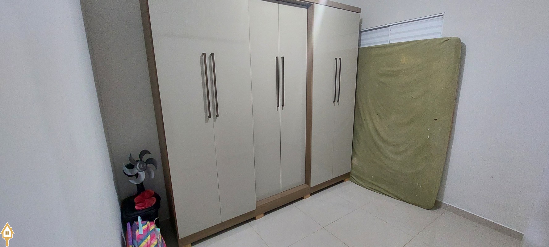 Casa com piso em porcelanato, 3 quartos, wc social com box e espelho, cozinha com móveis planejados, varanda coberta. Uma garagem coberta e 2 descobertas.