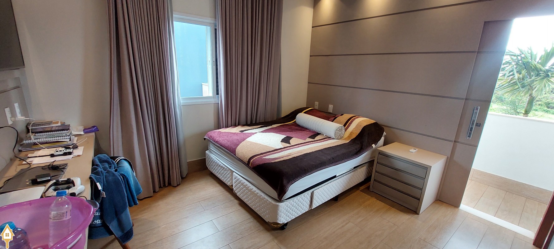 .Ampla janela com cortinas automatizadas, proporcionando iluminação natural,