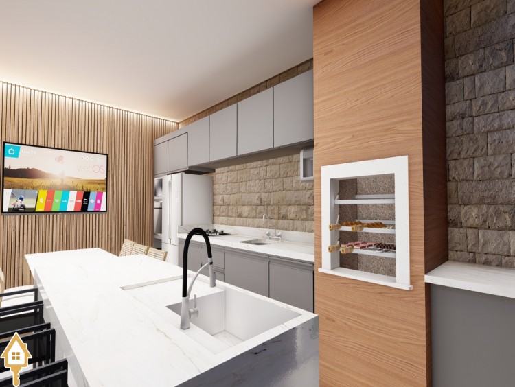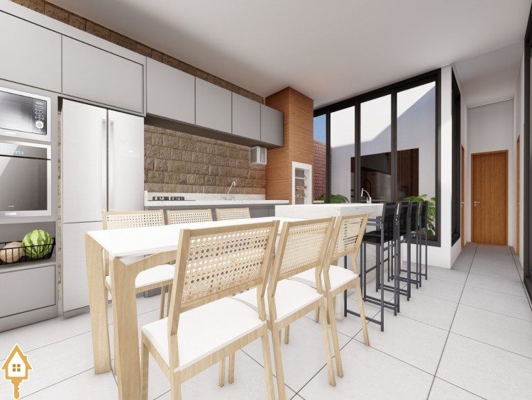 Esta casa possui sala de TV, escritório privativo, iluminação natural abundante rodeada pela varanda externa, cozinha gourmet com churrasqueira, integrada com charmoso jardim de inverno, lavabo. Possui 3 suítes sendo a master com closet, varanda externa, demais suítes contam com ampla janela com jardim de inverno.