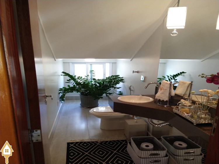Com 3 Suites sendo 2 embaixo, a suíte principal é no piso Superior, sala íntima ,sala 03 ambientes, lavabo, varanda, Gourmet ,piscina, lavanderia banheiro serviço.