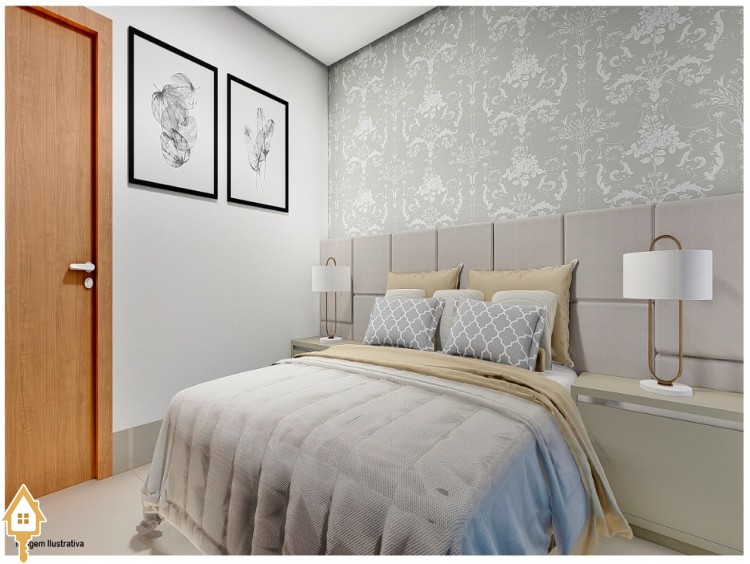 Contendo sala com sacada, cozinha americana, lavanderia, wc social, 2 quartos sendo 1 suíte com sacada e 1 vaga na garagem.