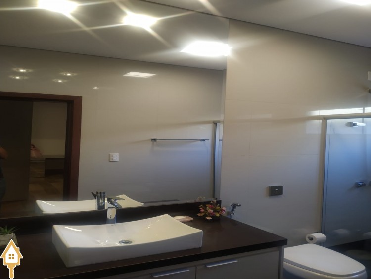 Uma suite com closet, duas cubas e dois chuveiros.