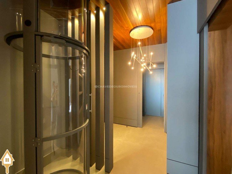 A elegância se faz presente em cada detalhe, desde as cortinas automatizadas e o ar condicionado central em tons sofisticados de cinza, até o elevador cápsula ELEVAC que une todos os andares com praticidade e estilo.