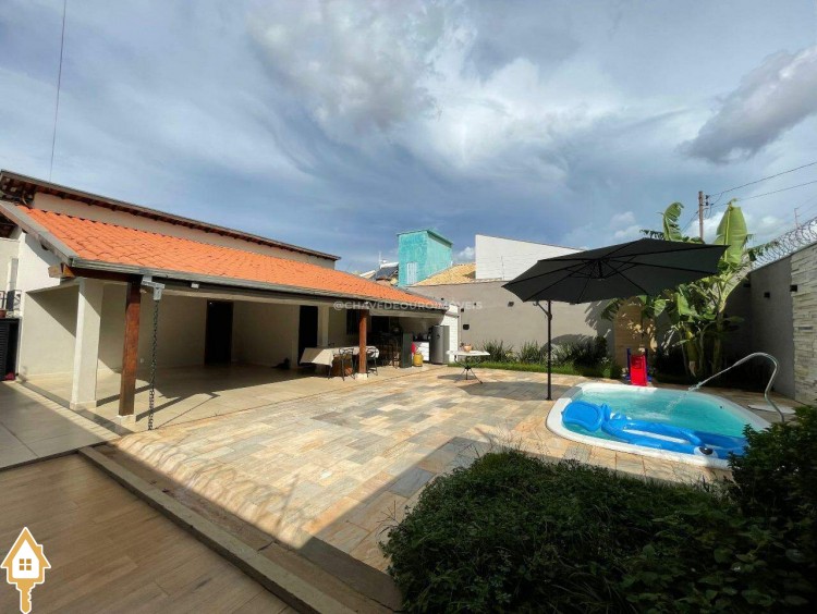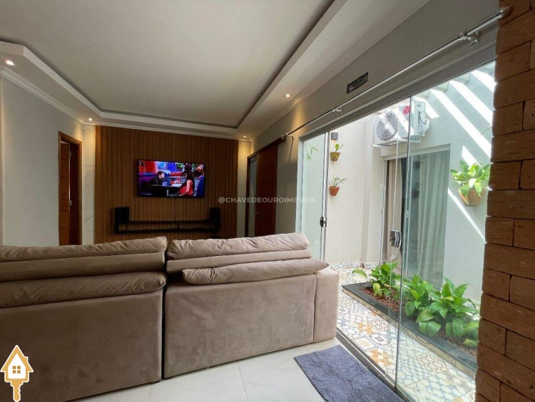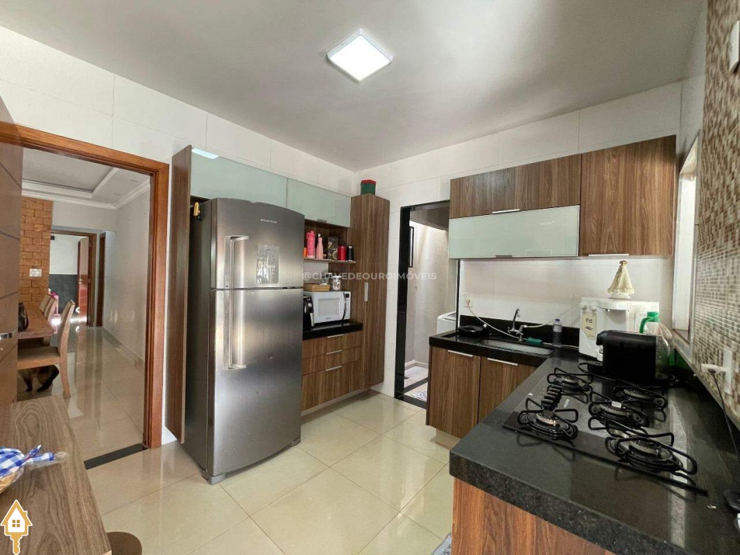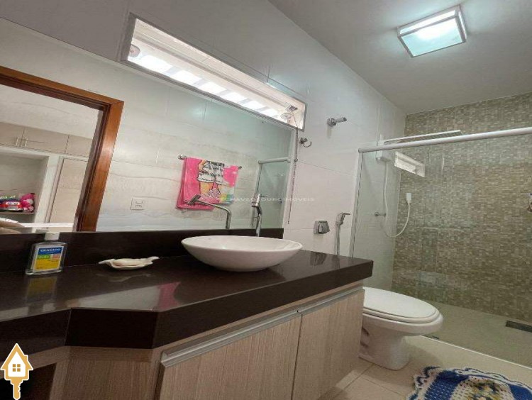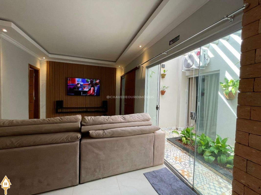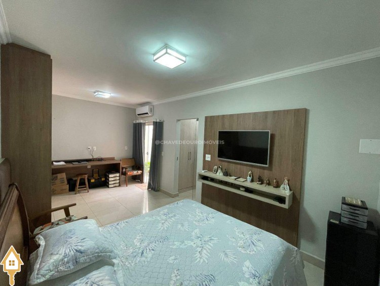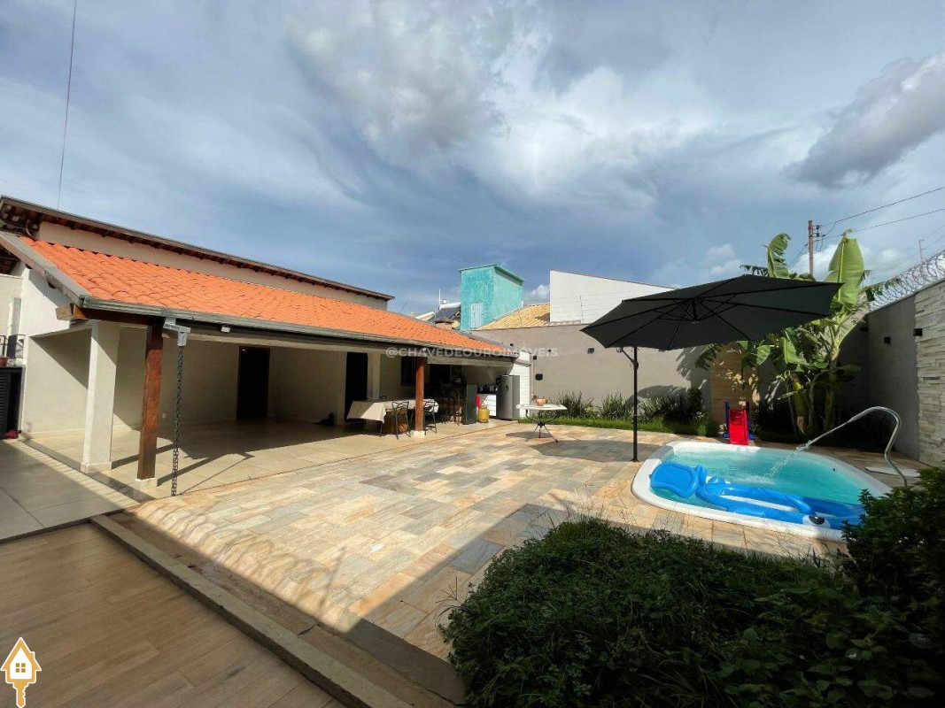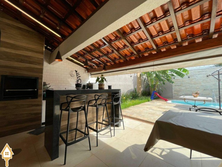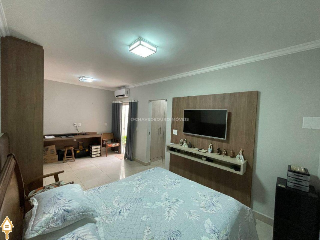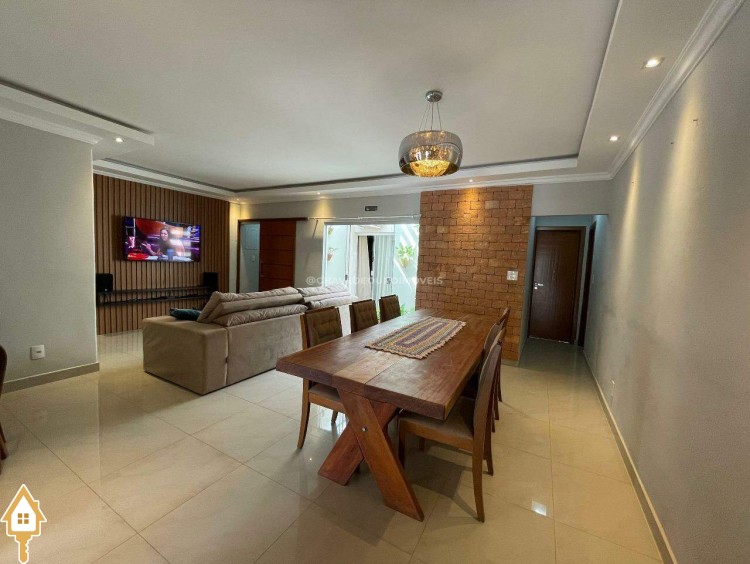 Apresentamos esta elegante residência com três suítes, sendo uma suíte máster com closet e banheira, além de uma ampla sala com dois ambientes que proporcionam um ambiente aconchegante e sofisticado. A cozinha é totalmente planejada e equipada, garantindo praticidade no dia a dia. A área externa é um grande destaque, contando com uma varanda gourmet completa com churrasqueira, piscina com cascata, jardim e um ambiente ideal para momentos de lazer e confraternização. Além disso, a casa dispõe de lavabo, cômodo de apoio, banheiro externo e garagem com capacidade para três veículos. O imóvel é totalmente climatizado, com ar-condicionado em todas as suítes, possui armários planejados em diversos ambientes e um eficiente sistema de segurança, incluindo circuito interno de monitoramento, concertina e cerca elétrica.