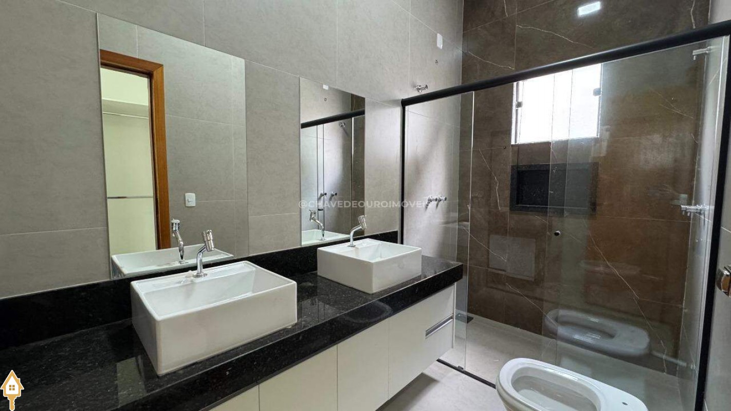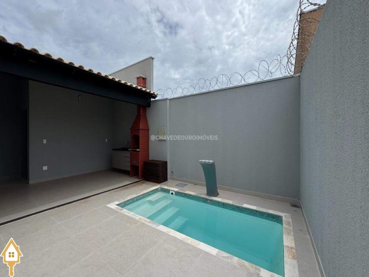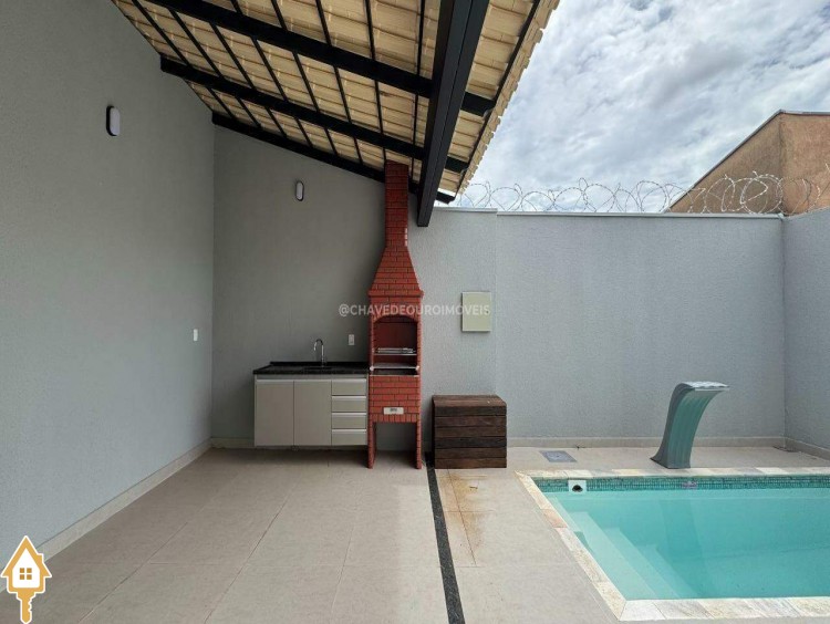 Apresentamos uma linda casa, ideal para quem busca conforto e sofisticação. Este imóvel conta com 03 suítes, todas equipadas com armários planejados, sendo a suíte master um destaque à parte, com closet espaçoso e cubas duplas, proporcionando um toque de elegância e praticidade. A casa possui aquecimento solar em duas das suítes, além de uma piscina aquecida com cascata, perfeita para momentos de lazer e relaxamento. A sala de estar é integrada à copa, criando um ambiente acolhedor e convidativo, e a cozinha também conta com armários, otimizando o espaço. Nos fundos, há um banheiro adicional, juntamente com uma lavanderia e uma despensa, que oferecem funcionalidade ao dia a dia. O quintal é amplo, ideal para atividades ao ar livre, e o imóvel é equipado com portão eletrônico para maior segurança. A garagem comporta 02 carros cobertos e 02 descobertos, e o jardim bem cuidado complementa a beleza da residência. Para garantir o conforto em todas as estações, um ar condicionado já está instalado na suíte.