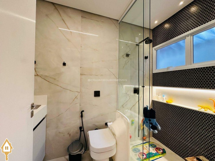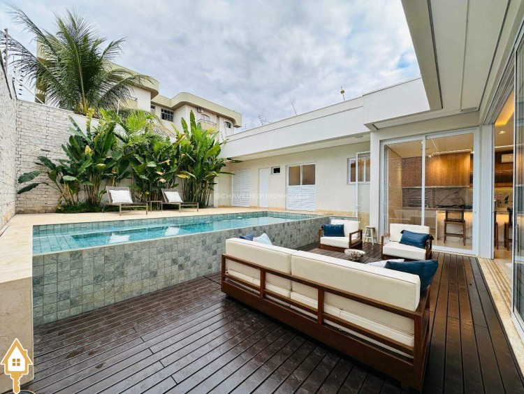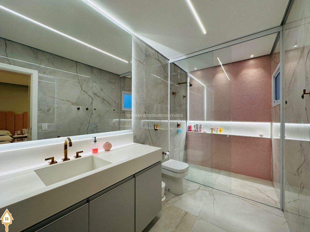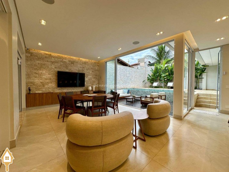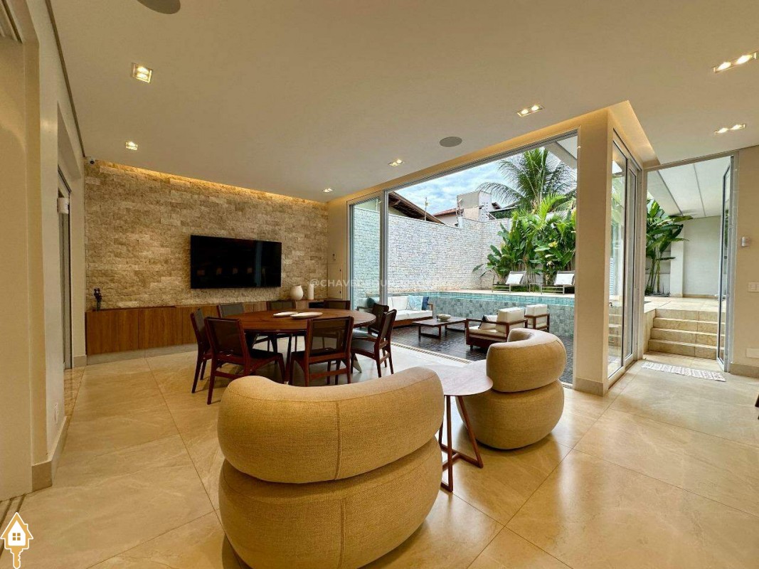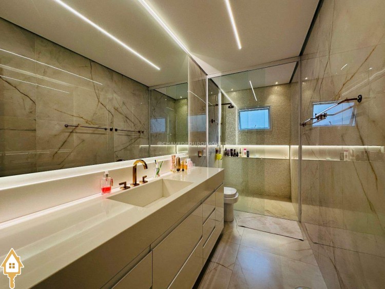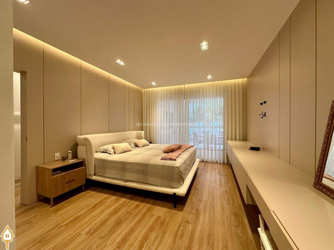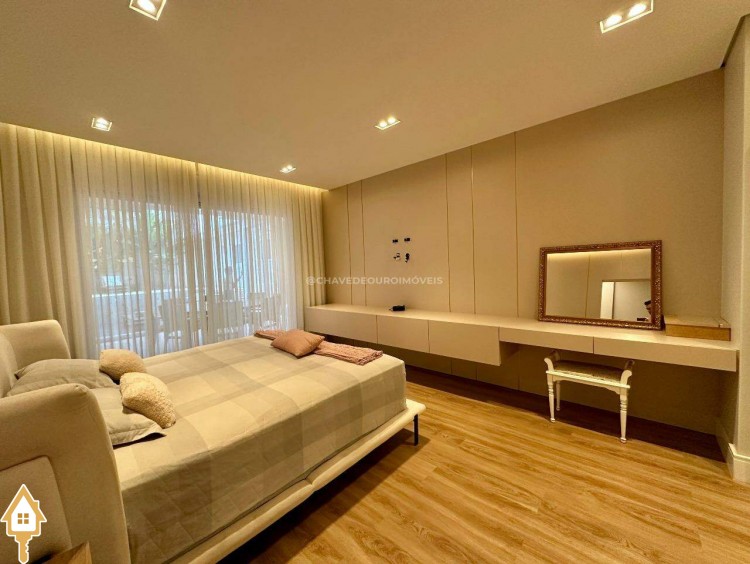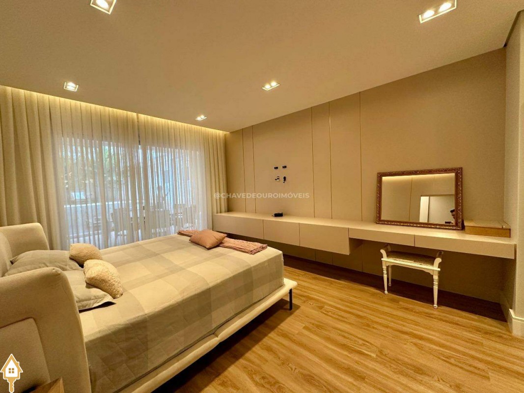 Segurança e conforto: sistema de câmeras, sensores de presença, cerca elétrica, torneiras e piscina com aquecimento solar, ar-condicionado nas 4 suítes, sala e área gourmet.
