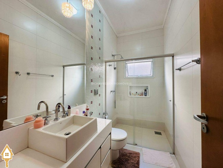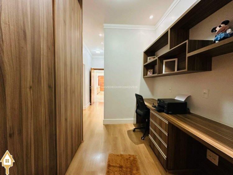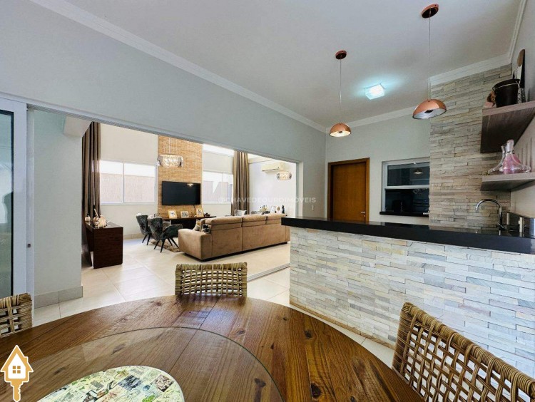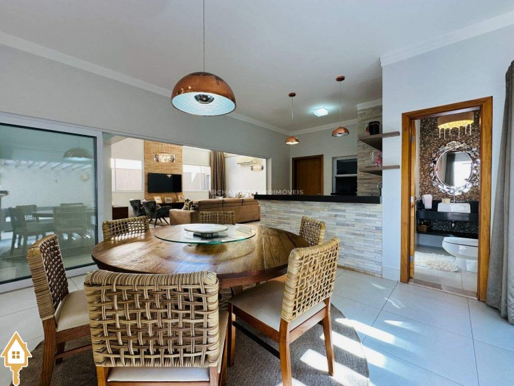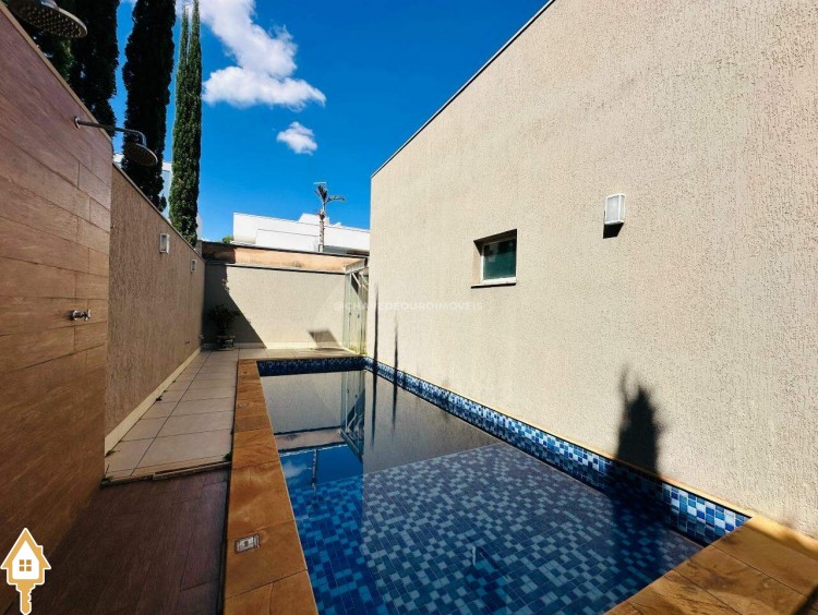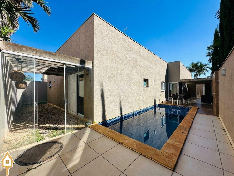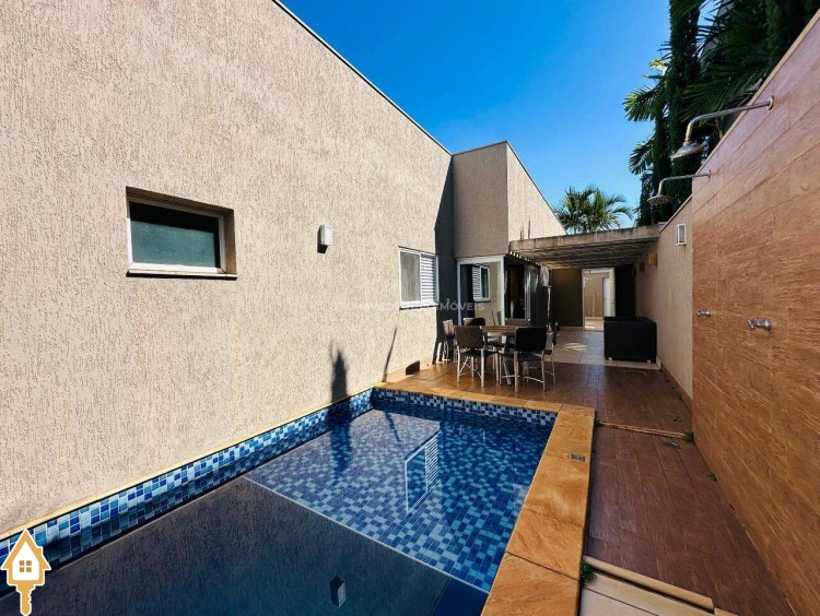 Sala de estar com pé direito duplo, com bastante iluminação natural, área gourmet com balcão e churrasqueira, lavabo, área externa com pergolado e piscina aquecida, 04 quartos, sendo uma master com closet, uma suíte padrão e mais dois quartos que compartilham um banheiro, corredor de circulação dos quartos com escritório de apoio e roupeiro, cozinha completa, lavanderia com despensa e lavatório, 04 vagas de garagem (duas cobertas) e aquecimento solar da água das torneiras e piscina. Casa com marcenaria completa em todos os ambientes. ID IMOVIEW: 7044