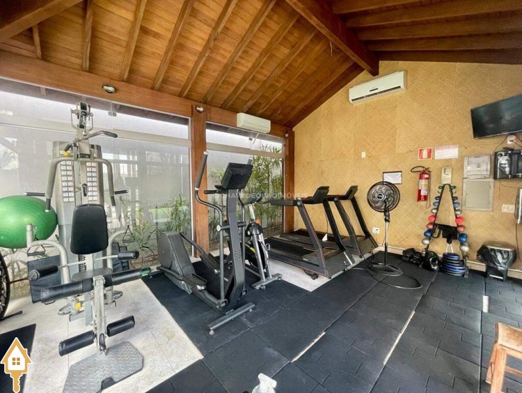 O apartamento também dispõe de lavabo, cozinha, área de serviço com banheiro e dois vagas de garagem cobertas. Todos os ambientes estão mobiliados com móveis planejados, garantindo funcionalidade e estética.
