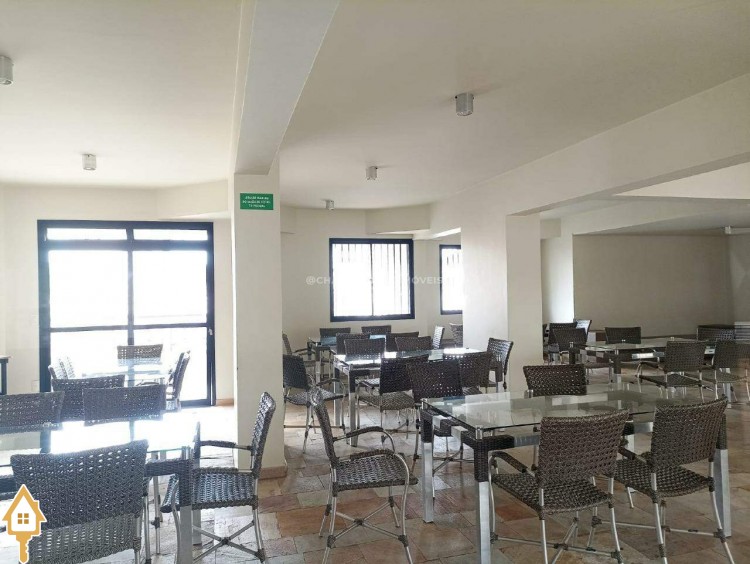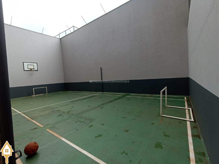 O condomínio oferece portaria 24 horas, piscina, salão de festas, quadra poliesportiva e conta com poço artesiano. A taxa condominial inclui o consumo de água e gás.