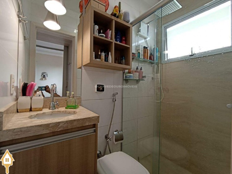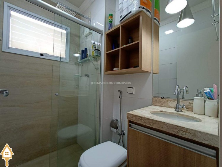 Os banheiros estão equipados com box de blindex, conferindo sofisticação e facilidade na manutenção.