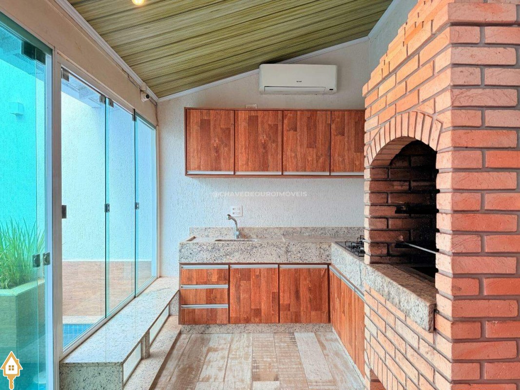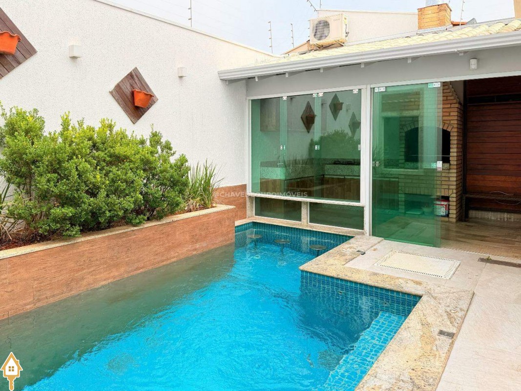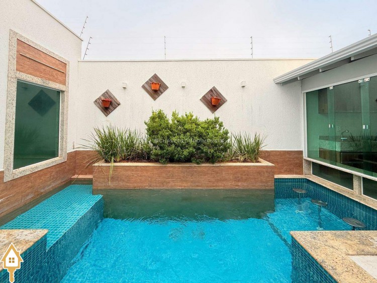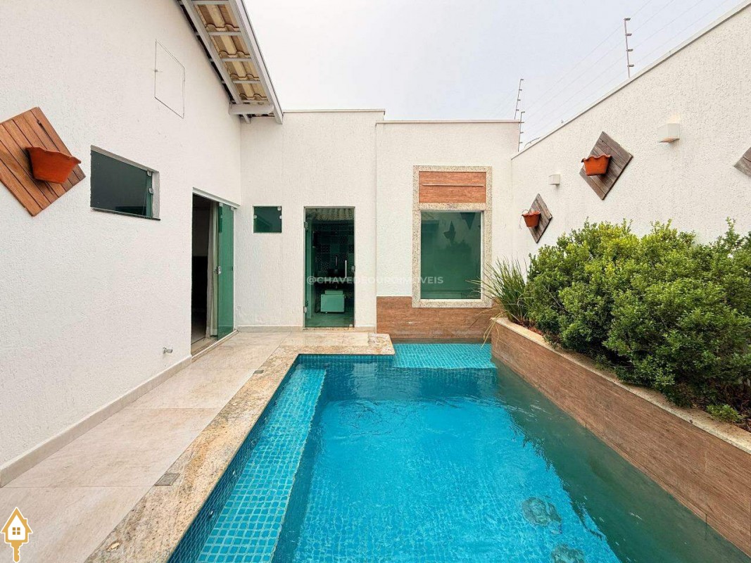 Casa à venda em Uberaba composta por 3 quartos com armários (sendo uma suite), wc social, sala com painel de tv, cozinha com armários, área de serviço, varanda gourmet, lavabo, piscina aquecida com iluminação e cascata, sauna e garagem para 2 carros grandes. Fino acabamento de muito bom gosto.