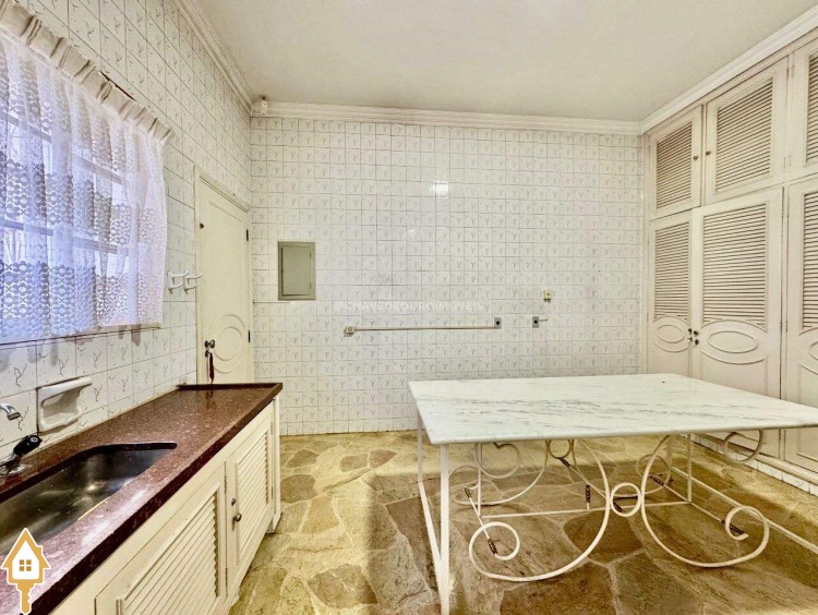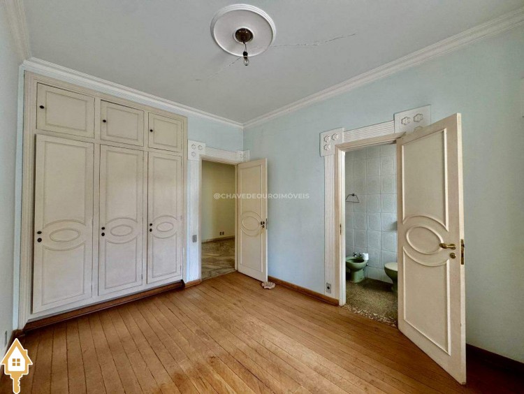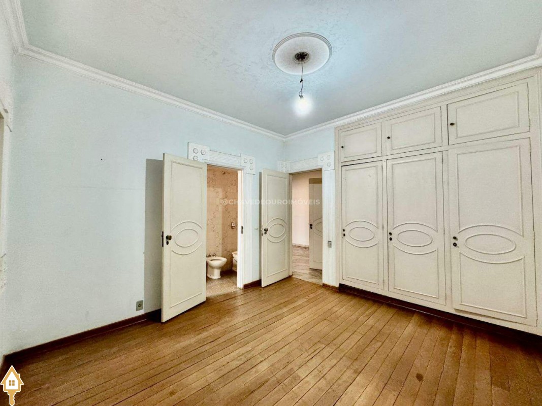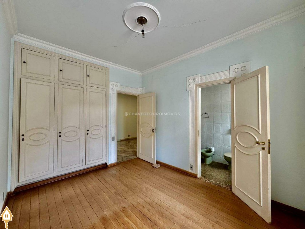 O imóvel oferece cinco quartos, sendo duas suítes, três salas espaçosas, sala de jantar, copa, cozinha com armários planejados, lavabo e banheiro social.
