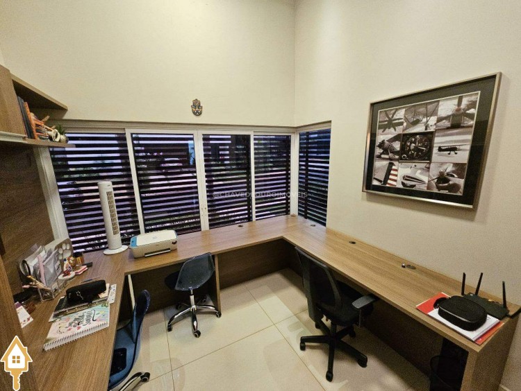 A área social é um verdadeiro convite ao convívio: sala de visita ampla e iluminada, cozinha funcional com móveis planejados, escritório reservado e aquecimento solar que une praticidade e sustentabilidade.