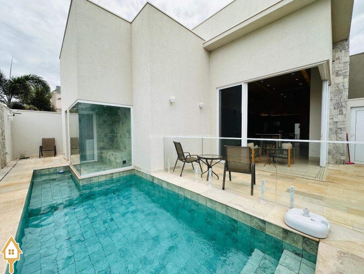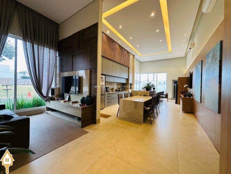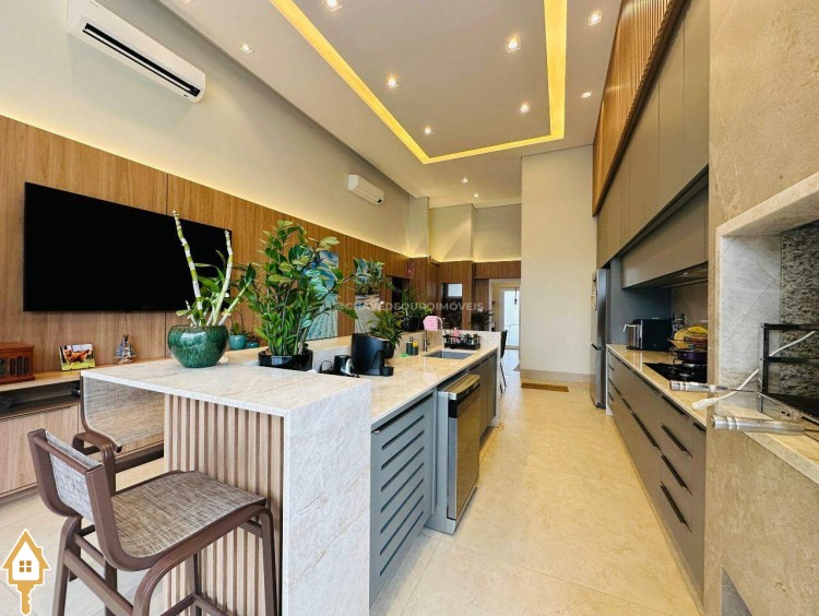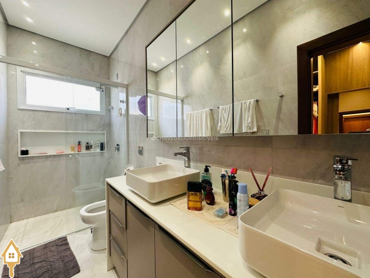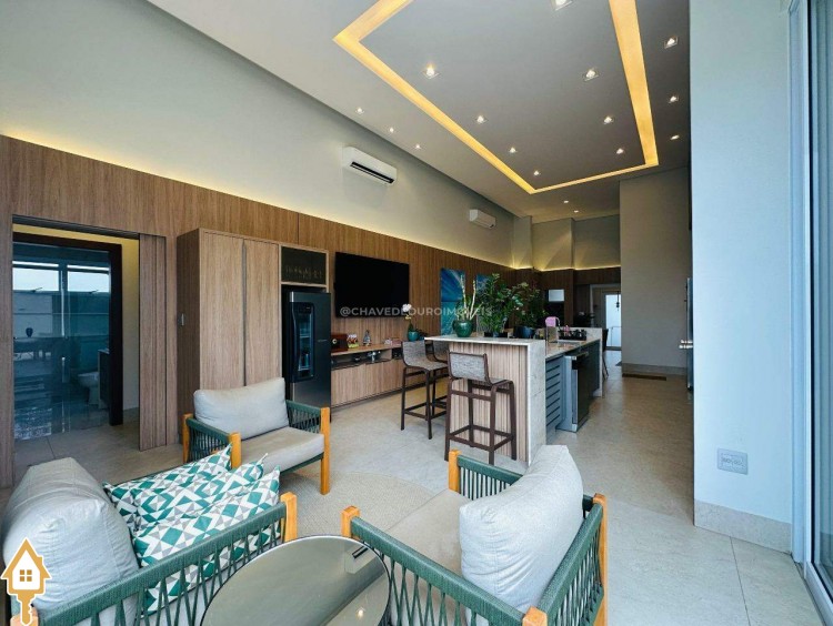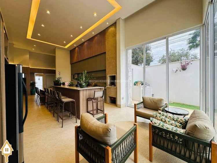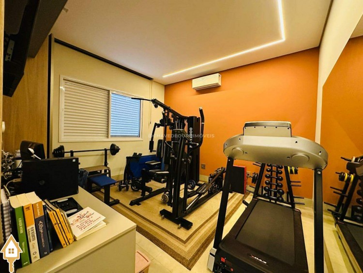 A área social é um espetáculo à parte: sala com pé-direito duplo, integrando, sala de TV, cozinha gourmet com churrasqueira e uma ampla varanda com piscina aquecida, sauna e despensa. Conta ainda com lavanderia e garagem para quatro carros.