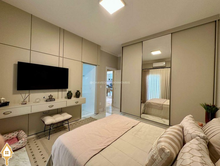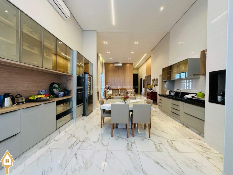Casa á venda no condomínio Damha l , com três suítes amplas todas com moveis planejados, ar condicionado, cortinas, porta balcão, sala espaçosa com três ambientes planejados com cortinas e ar-condicionado, lavabo, e um escritório que pode ser convertido em uma quarta suíte, cozinha gourmet integrada com a sala e equipada com churrasqueira, ideal para momentos de convívio, além de uma área externa com piscina aquecida, lavanderia completa e garagem para até quatro carros. O imóvel se destaca pelo fino acabamento, com armários planejados em todos os ambientes, ar condicionado estrategicamente posicionado, e sistema de aquecimento nos chuveiros e torneiras, proporcionando conforto e praticidade para os moradores.