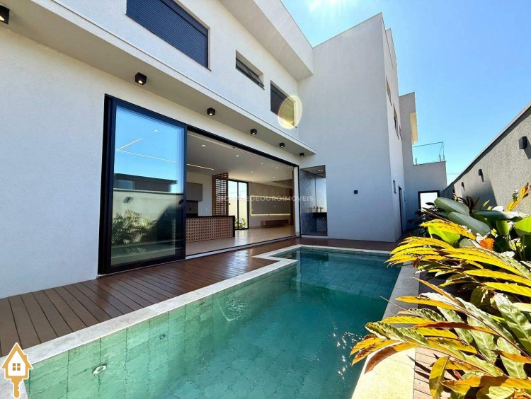 A casa conta ainda com piscina aquecida, banheiros internos e externos para a piscina, garagem para quatro veículos, e um lindo paisagismo com irrigação automatizada.