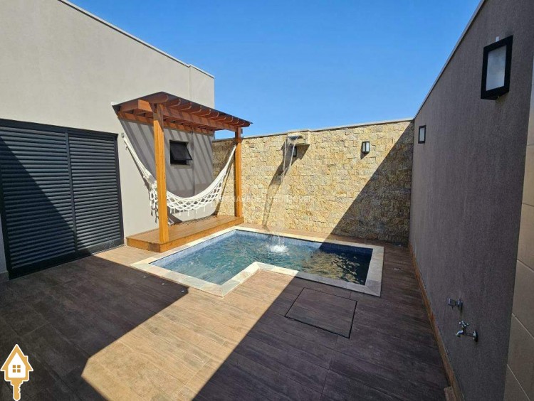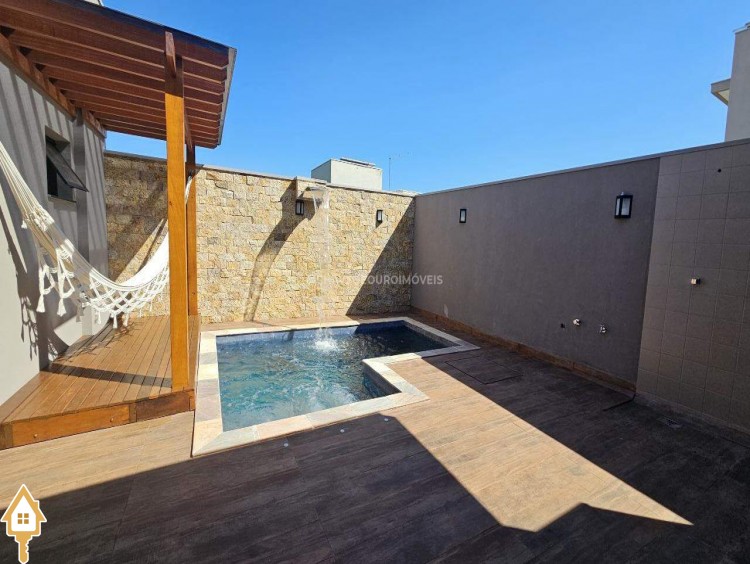 A área de lazer da casa conta com churrasqueira e piscina na área externa, perfeita para receber amigos e família. Todos os cômodos possuem marcenaria planejada, trazendo organização e elegância para o dia a dia.