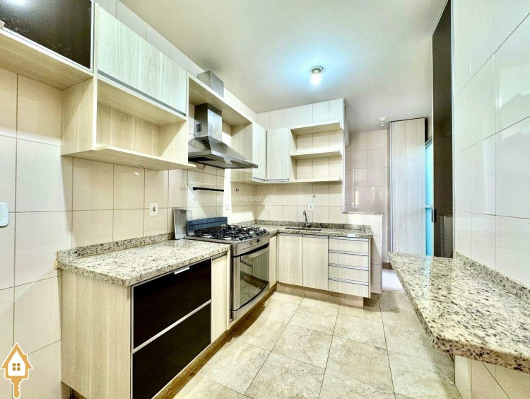 O apartamento possui 03 quartos, sendo um suíte, lavabo, banheiro social, sala de estar e jantar, cozinha separada, lavanderia com área externa aberta para secagem e 02 vagas de garagens cobertas (gaveta). Armários planejados Basílio na cozinha, planejados nos quartos e corredor de circulação. Ar condicionado na suíte.