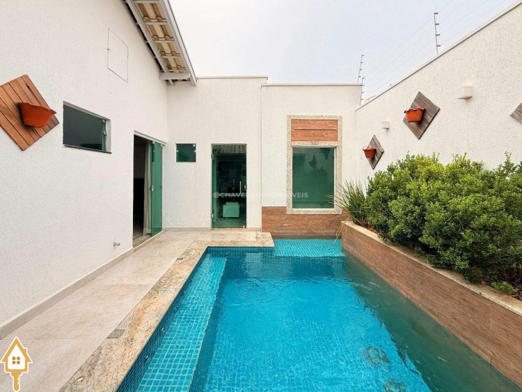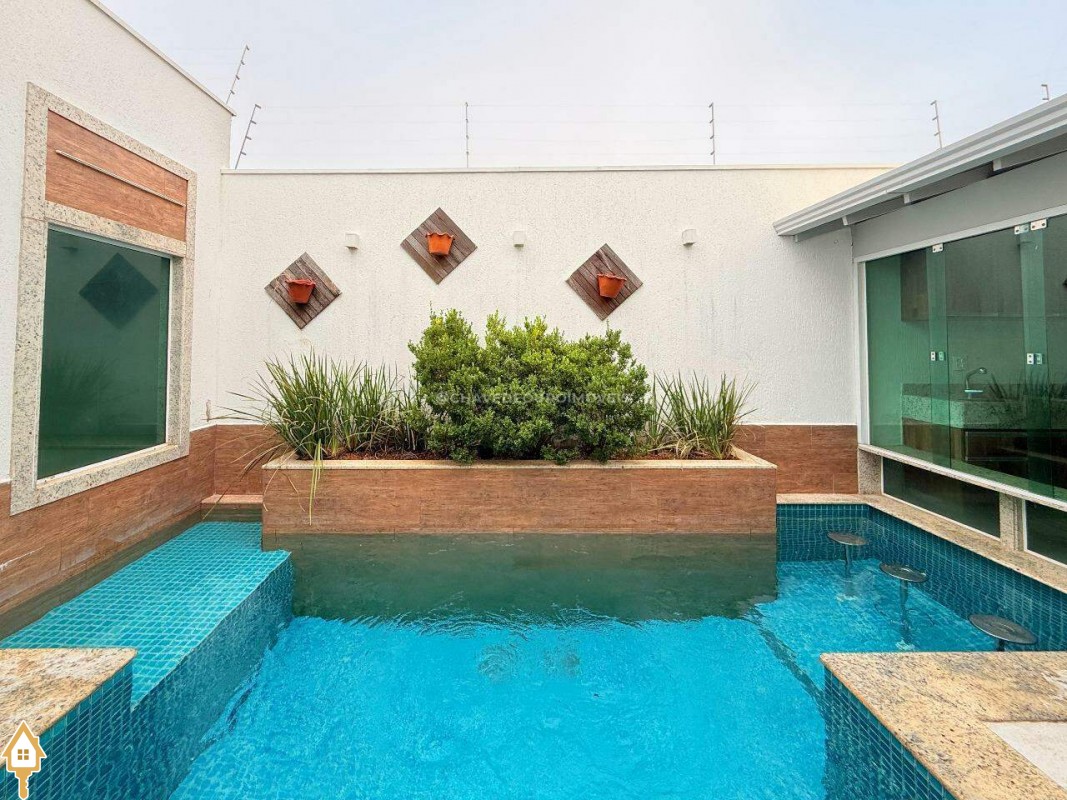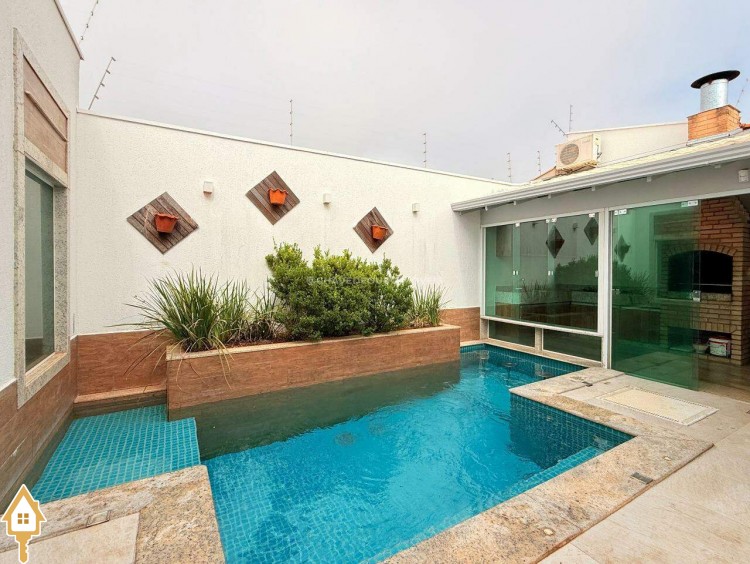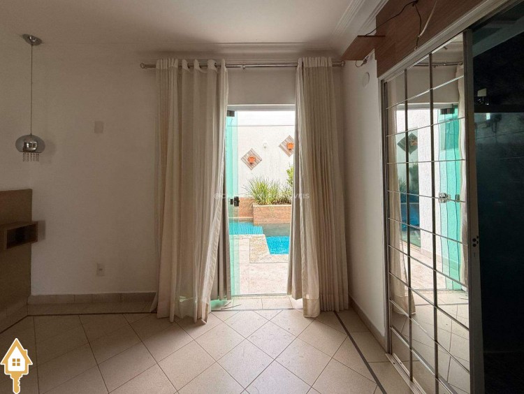Casa para locação em Uberaba composta por 3 quartos com armários (sendo uma suite), wc social, sala com painel de tv, cozinha com armários, área de serviço, varanda gourmet, lavabo, piscina aquecida com iluminação e cascata, sauna e garagem para 2 carros grandes. Fino acabamento de muito bom gosto.
