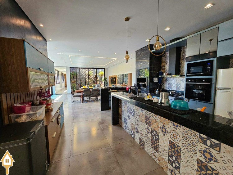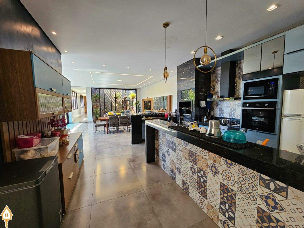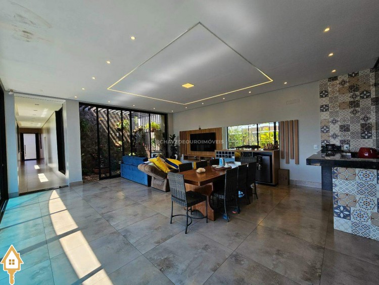 Casa com 3 suítes, sendo duas com closet, que unem conforto e privacidade. Os ambientes sociais foram pensados para receber bem: varanda gourmet integrada, sauna e uma piscina aquecida perfeita para o lazer em família. O imóvel ainda conta com um belo gramado e jardim, trazendo charme e contato com a natureza. Tudo isso dentro de um condomínio fechado de alto padrão, que garante segurança e qualidade de vida.