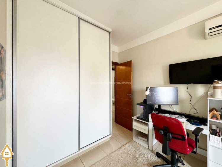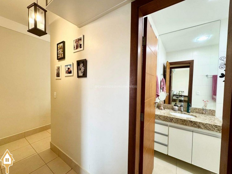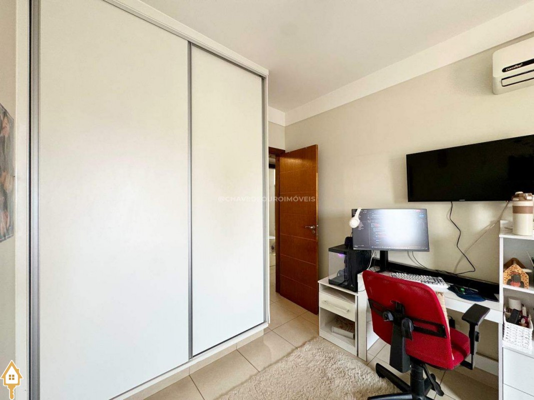 Armários planejados nos quartos, corredor de circulação, banheiros, cozinha, lavanderia e painel de tv.