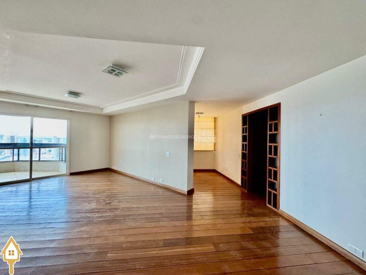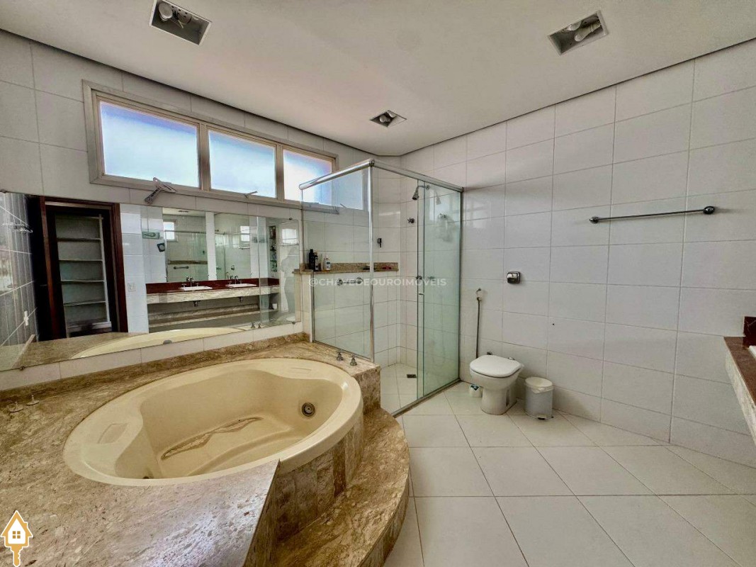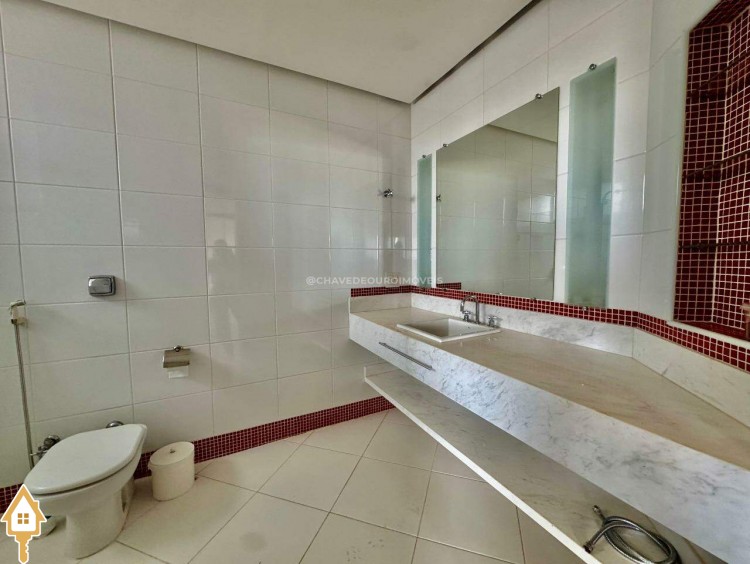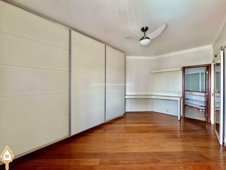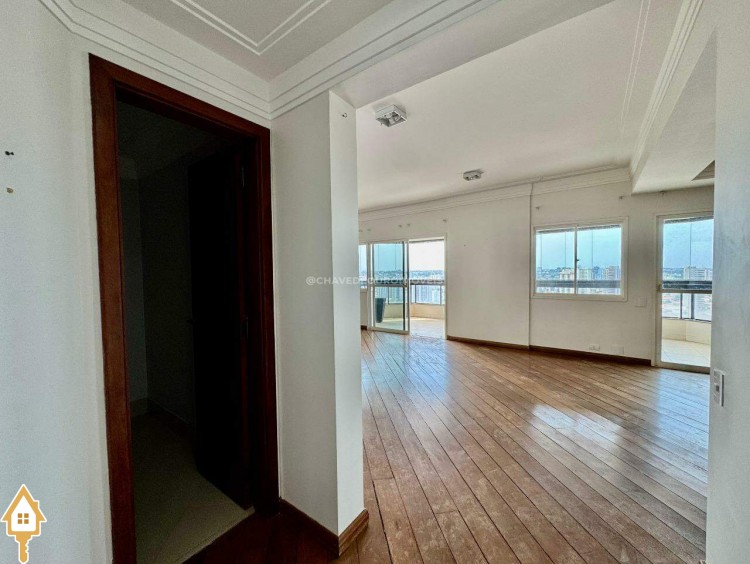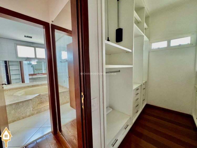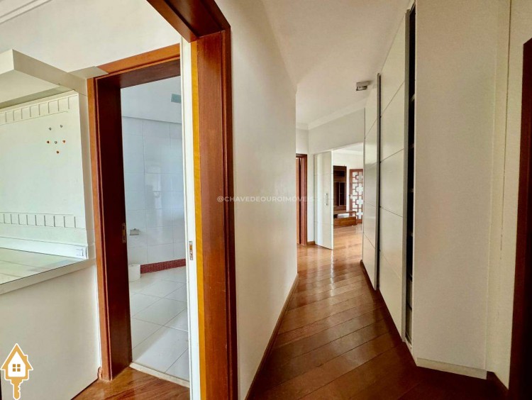 O apartamento conta com 04 suítes amplas, todas com armários planejados, sendo a master com closet e hidromassagem. Possui sala de TV privativa, roupeiro no corredor, escritório integrado à sala de estar e jantar para vários ambientes, lavabo e uma varanda com vista deslumbrante em andar alto.
