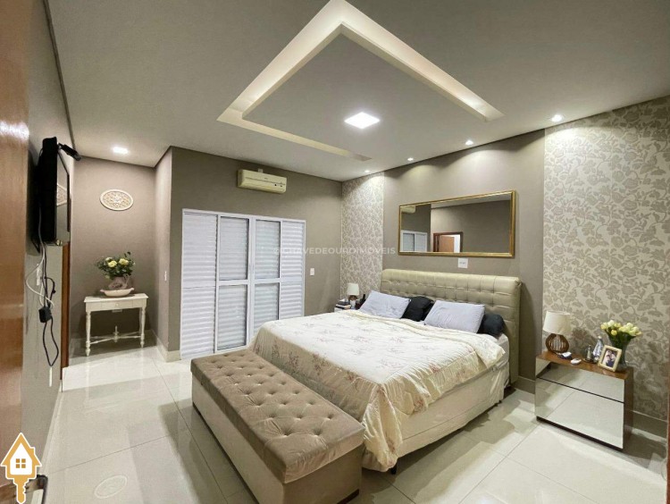 Casa a venda na cidade de Uberaba MG no bairro Jardim São Bento, o seu primeiro piso e composto de sala para três ambientes integrados e com pé direito duplo, com lindo jardim de inverno integrando os ambientes de cozinha com a varanda gourmet que e composta de churrasqueira, torre quente, ar-condicionado sua piscina com toda preparação para aquecimento, dispensa, lavabo, lavanderia e no seu segundo piso são três suítes sendo uma master com ar-condicionado, closet amplo, banheiro com pia dupla e sacada com vista para a área de lazer e sala de tv e garagem para até quatro carros. Obs: Casa com acabamento de primeira qualidade, porcelanatos Portobello e Portinari.