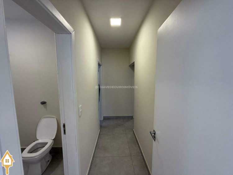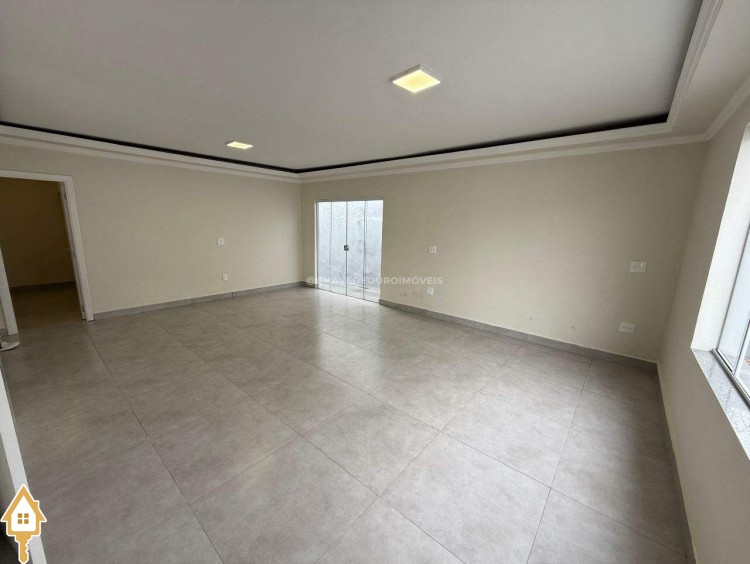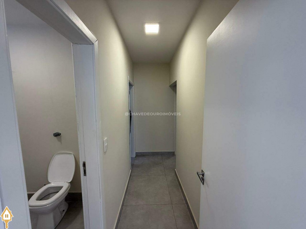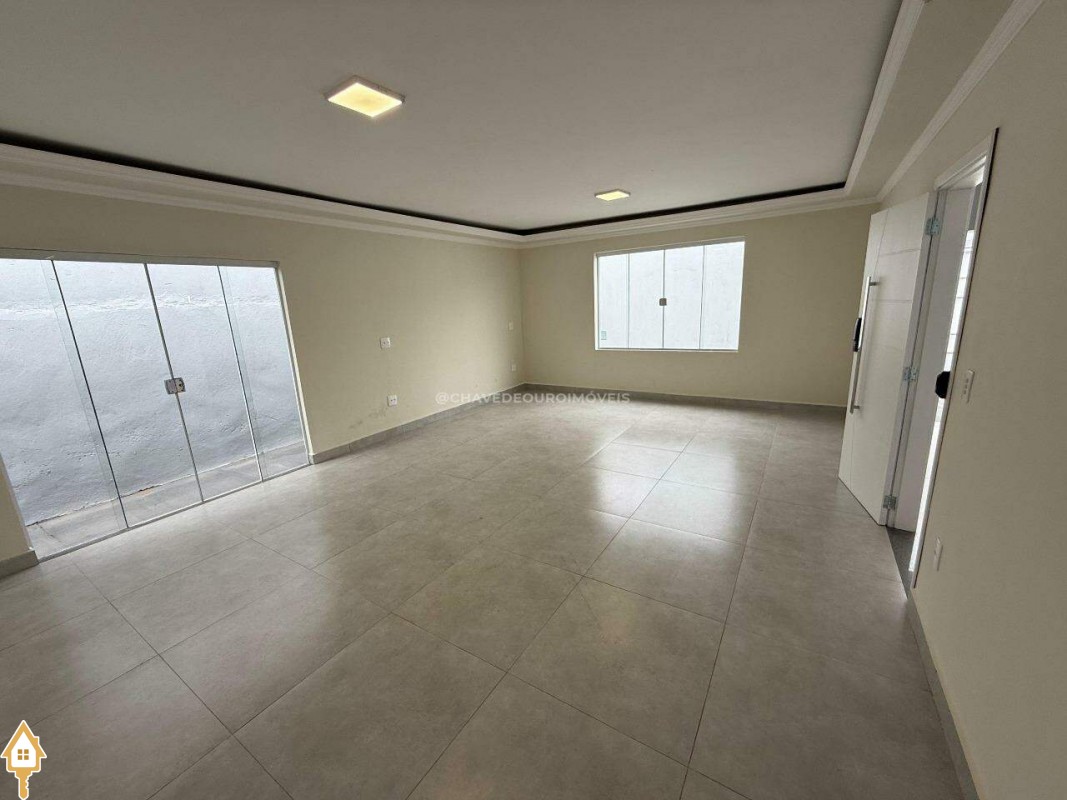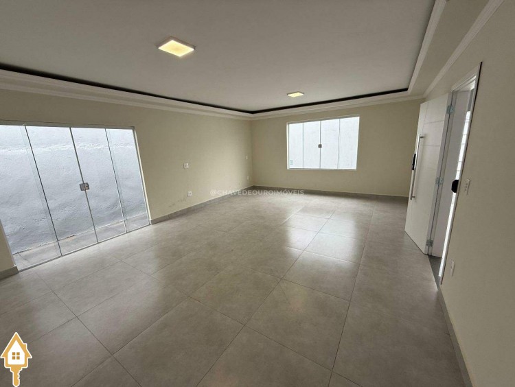 Casa com três quartos sendo uma suíte, sala em dois ambientes, wc social, cozinha, varanda nos fundos com balcão, wc externo.