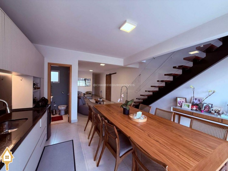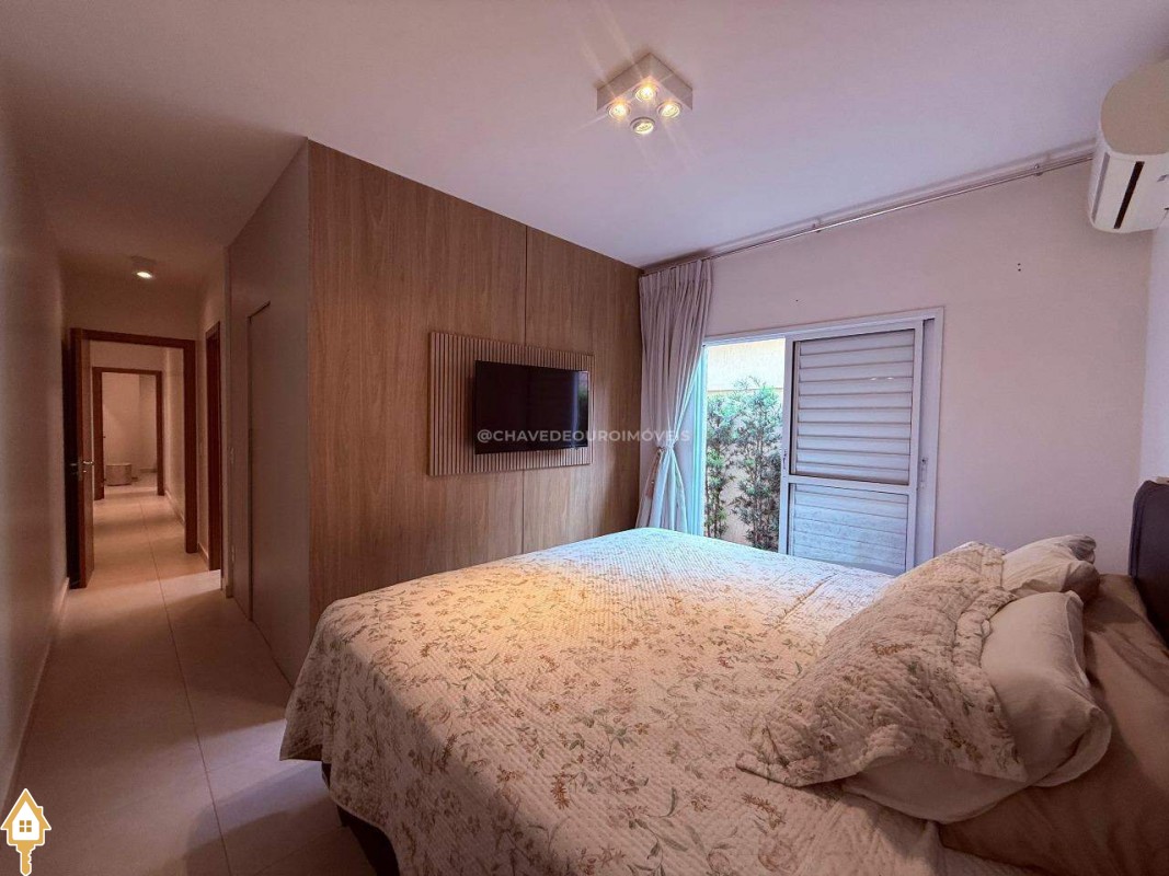 Casa à venda Condomínio Ayat 1, com 3 suítes sendo todas com ar condicionado, suite master com closet e cortina e demais suítes com persiana, cozinha planejada com forno elétrico, Cooktop e ventilador de teto, lavanderia com móveis planejado, sala ampla com cortina e ar condicionado, lavabo, área gourmet com churrasqueira, móveis planejados e ar condicionado, sótão com nichos e ar condicionado, garagem para 2 carros.