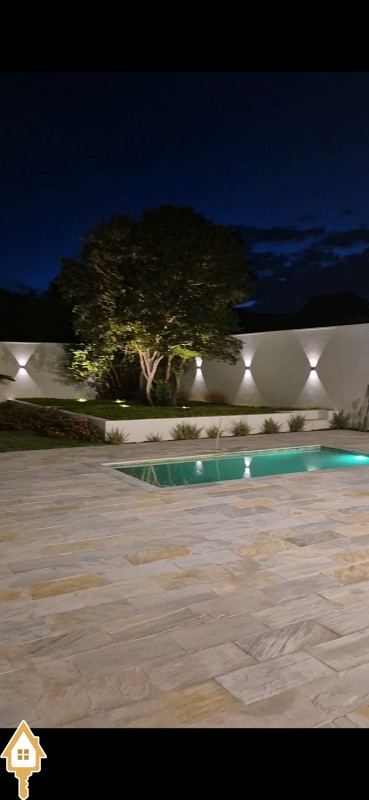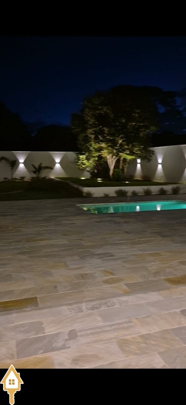 Piscina com cascata;