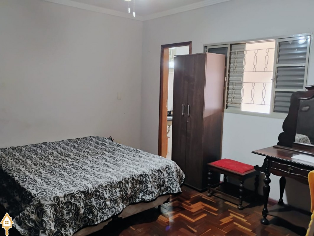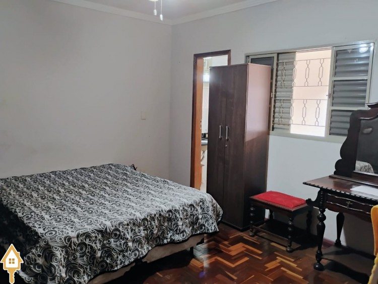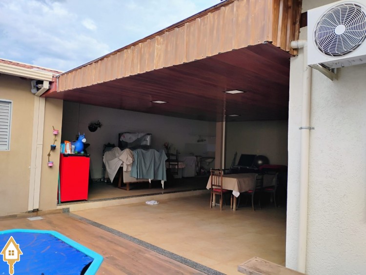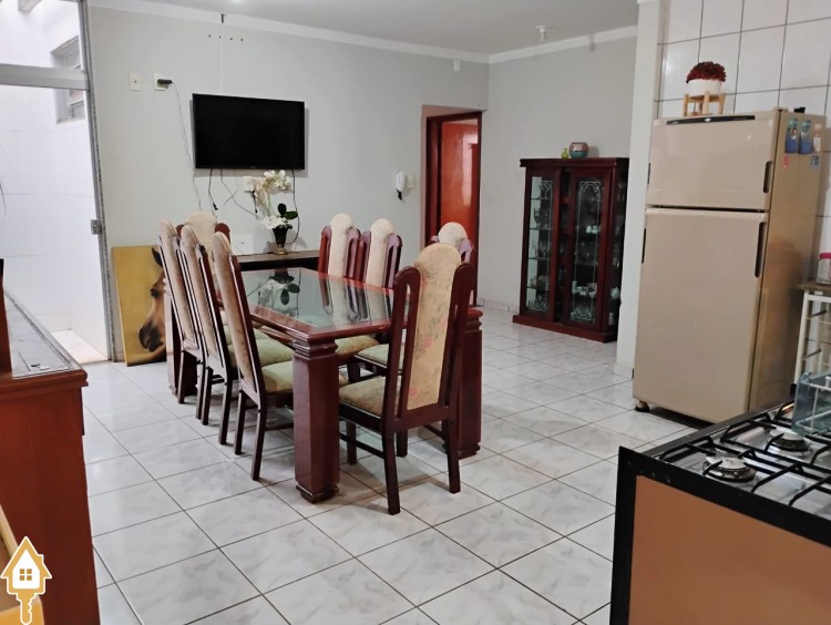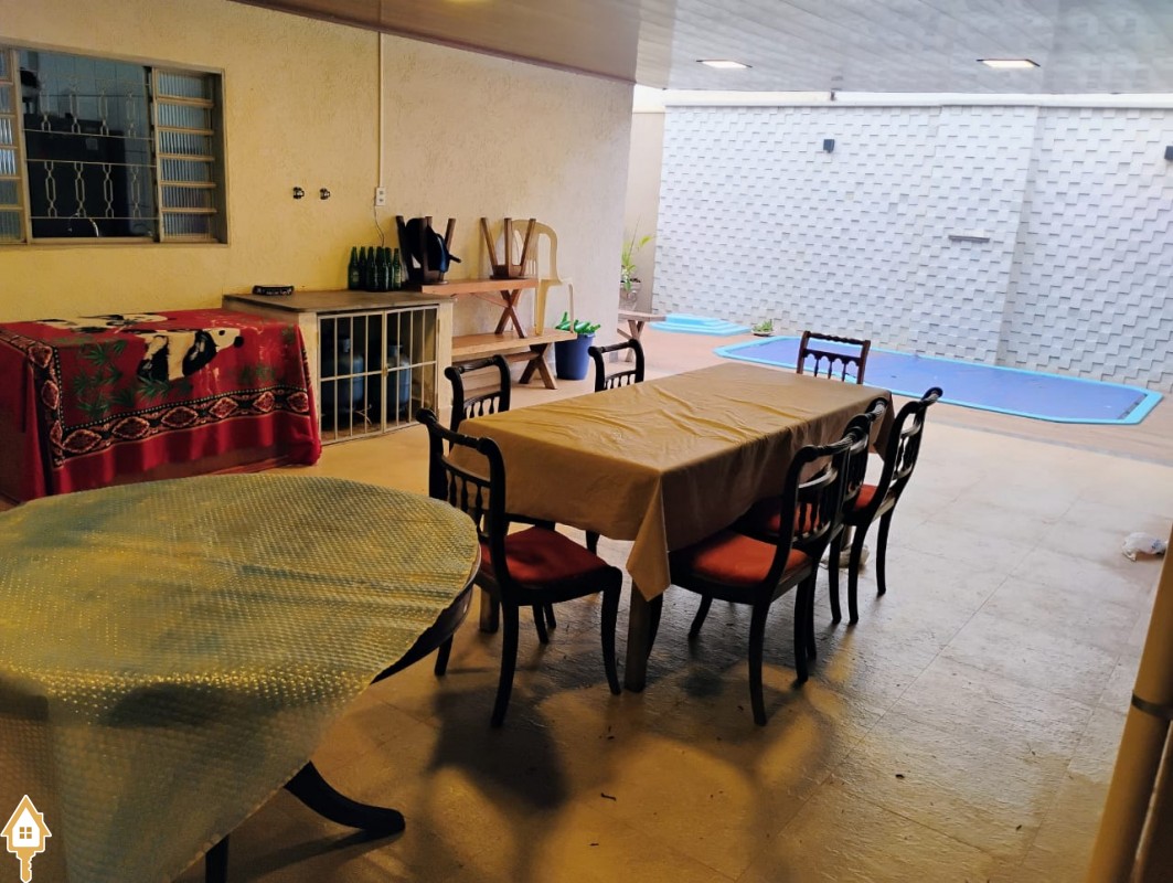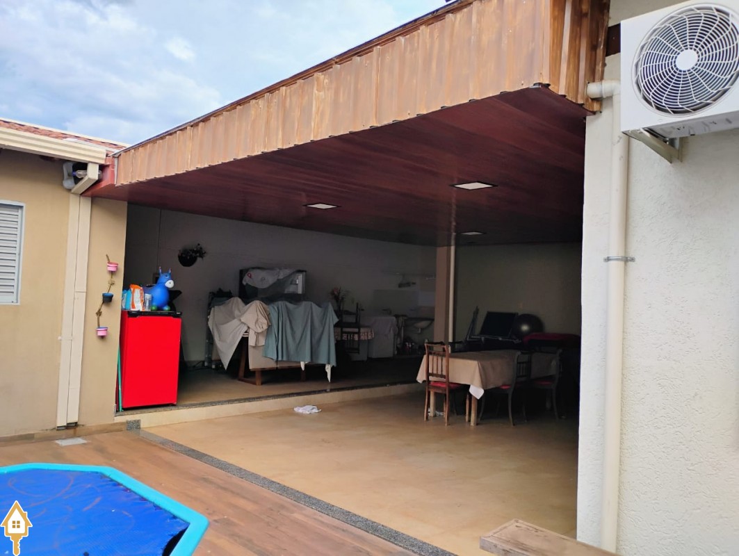03 quartos (sendo 01 suíte), 01 c/ armário embutido, sala social, copa-cozinha c/ armários, área de serviço coberta, varanda c/ bar e churrasqueira de alvenaria, despensa, wc, piscina, garagem para dois carros.