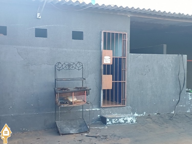 Painel frontal para Logo; portão de correr, pátio cimentado, depósito na entrada, 02 banheiros, varanda lateral grande, outra varanda anexa como complemento, cozinha azulejada, banheiro, cômodo pra guardar peças ou ferramentas todo gradeado.