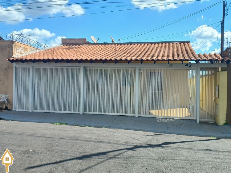 03 quartos com armários embutidos, sendo 02 suítes; sala de estar com barzinho de alvenaria, sala de jantar, copa-cozinha planejada, wc social com box, clara boia com vidro de blindex, varanda nos fundos com mesa grande de madeira e 02 bancos de madeira, churrasqueira de alvenaria, bancada e pia, área de serviço, 01 quartinho de depósito e 01 banheiro; garagem p/ 03 carros com entrada individuas; piso da casa todo de cerâmica;